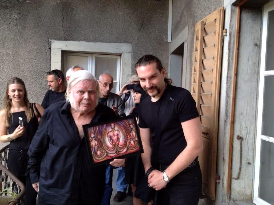 With my mentor, HR Giger in his Museum at Castle Gruyeres in Switzerland back in 2013, at the celebrations of 15th Anniversary of Giger Museum, when Master Giger took one of my artwork in his private collection on his house in Oerlikon, Zurich.
