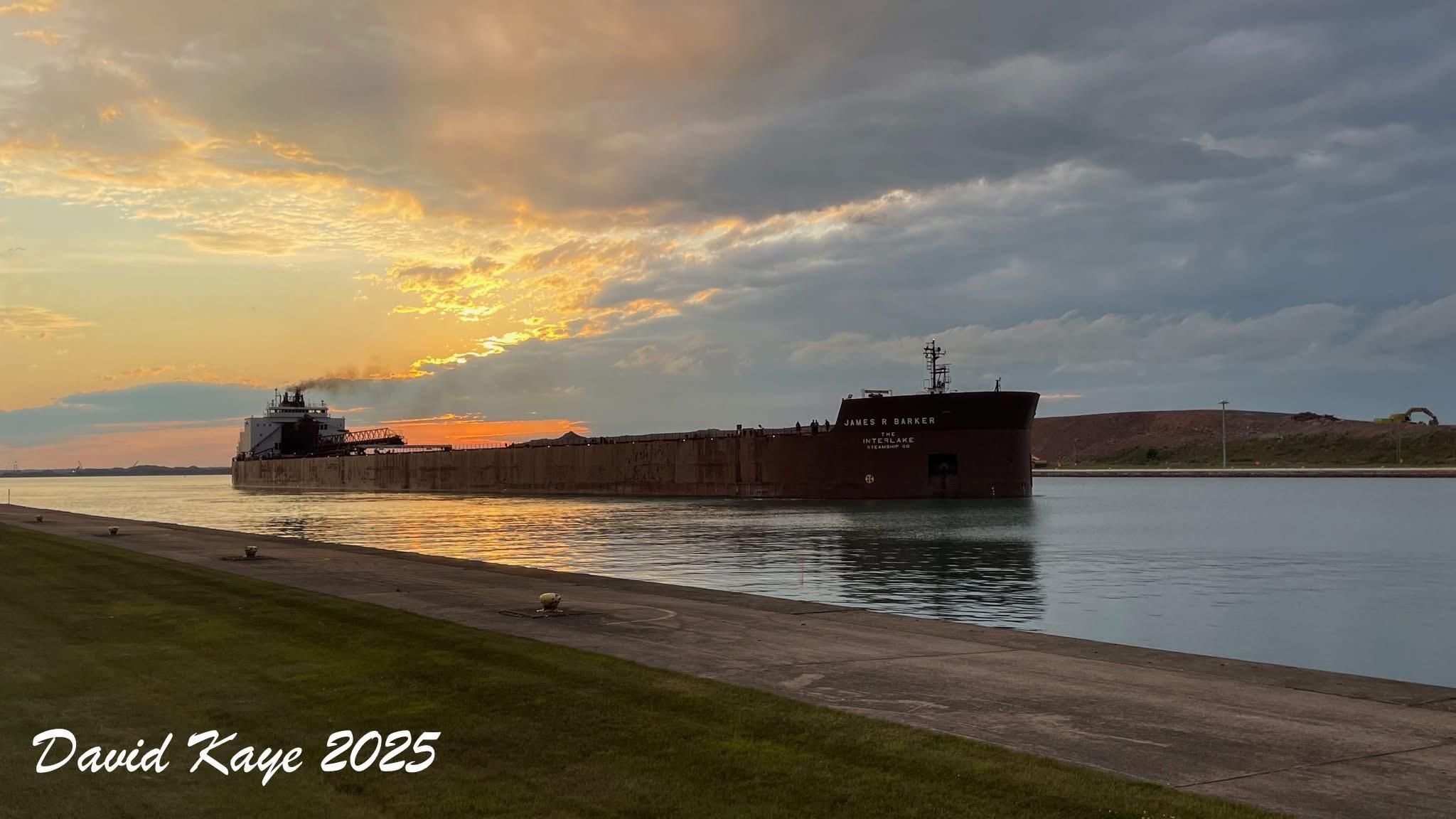 The James R. Barker downbound at the West Pier of the Soo Locks in Michigan coming in from Lake Superior, 10 August, 2025. Photo by David Kaye.
