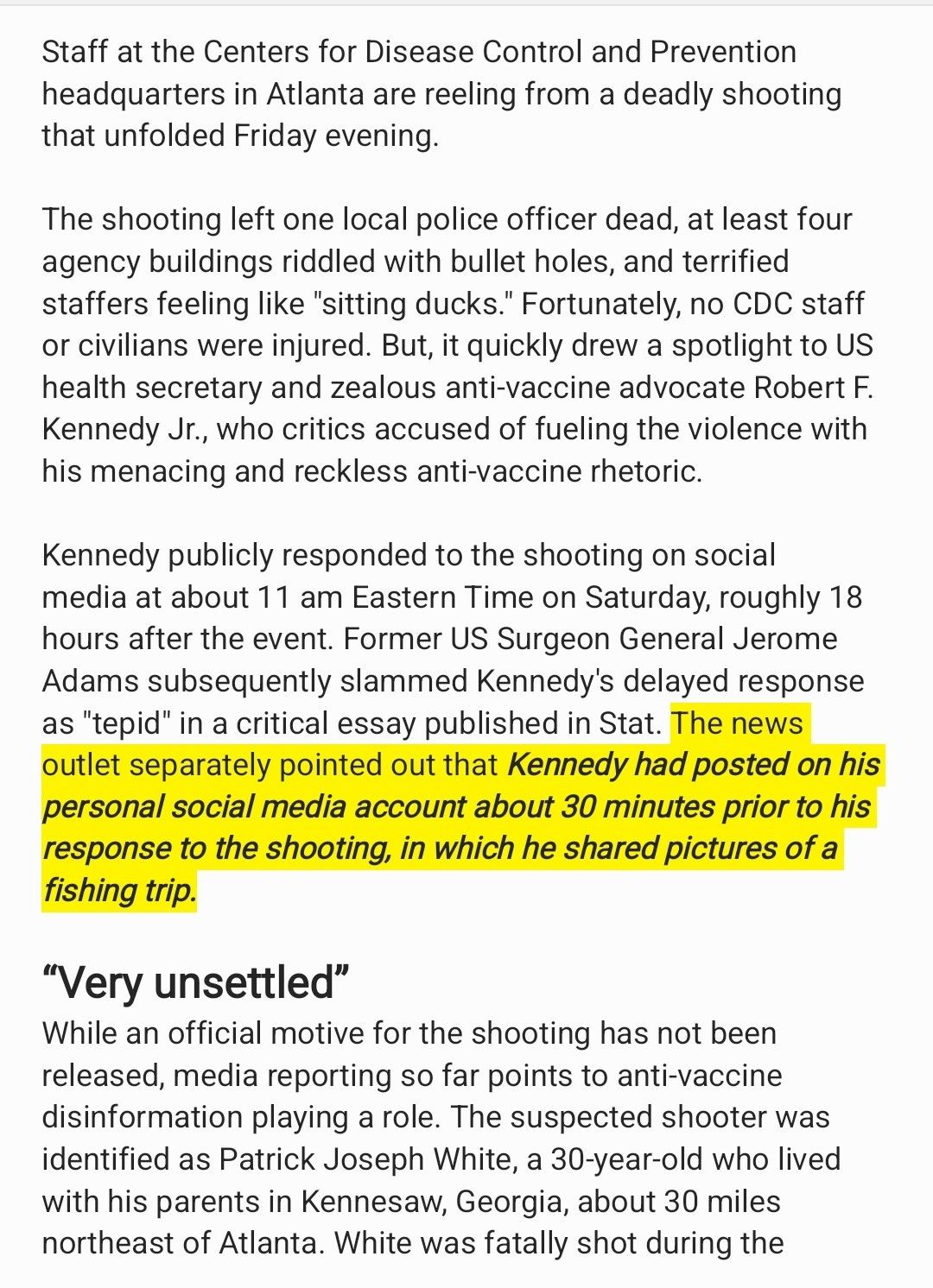 RFK Jr. posted fishing pics as CDC reeled from shooting linked to vaccine disinfo