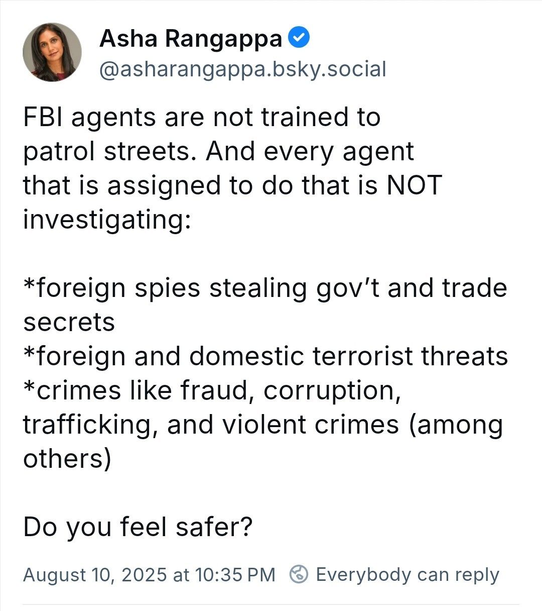 In a word, no. But then, I haven't felt particularly safe since before January... 2016.