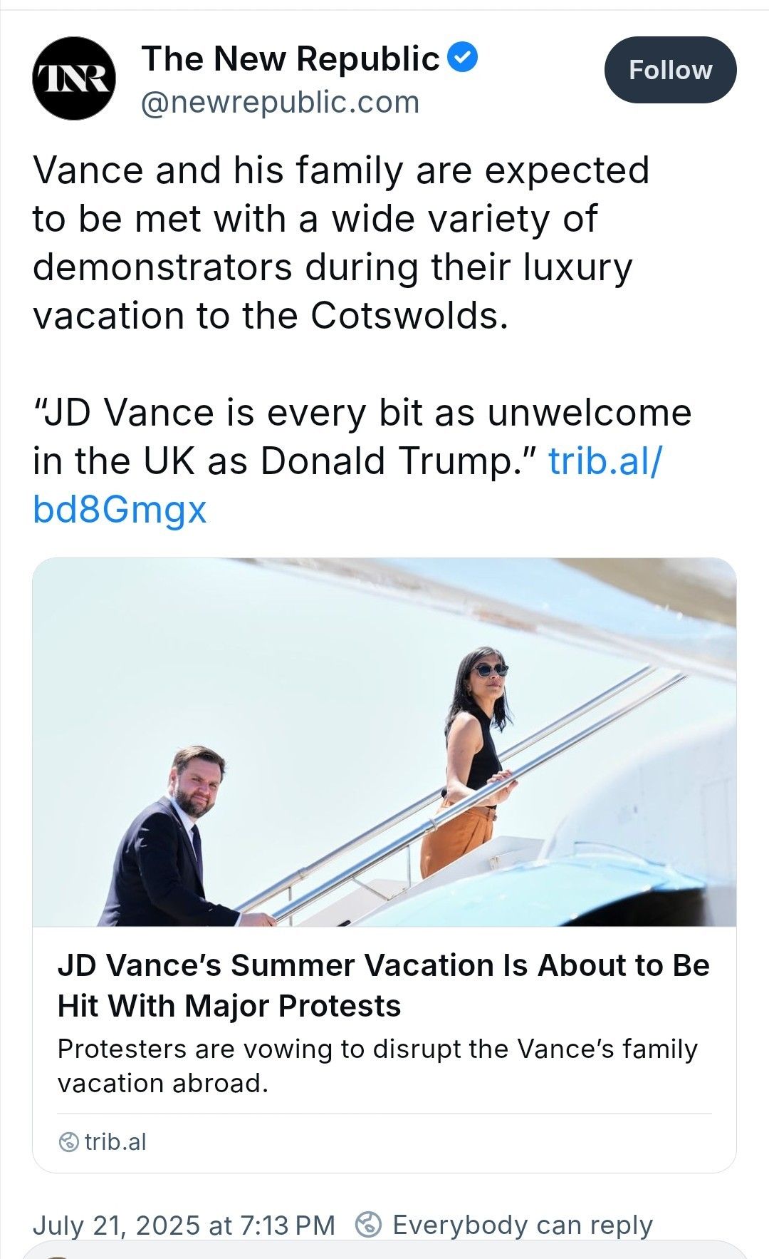 https://newrepublic.com/post/198156/jd-vance-summer-vacation-abroad-protests?utm_campaign=SF_TNR&utm_medium=social&utm_source=Bluesky
