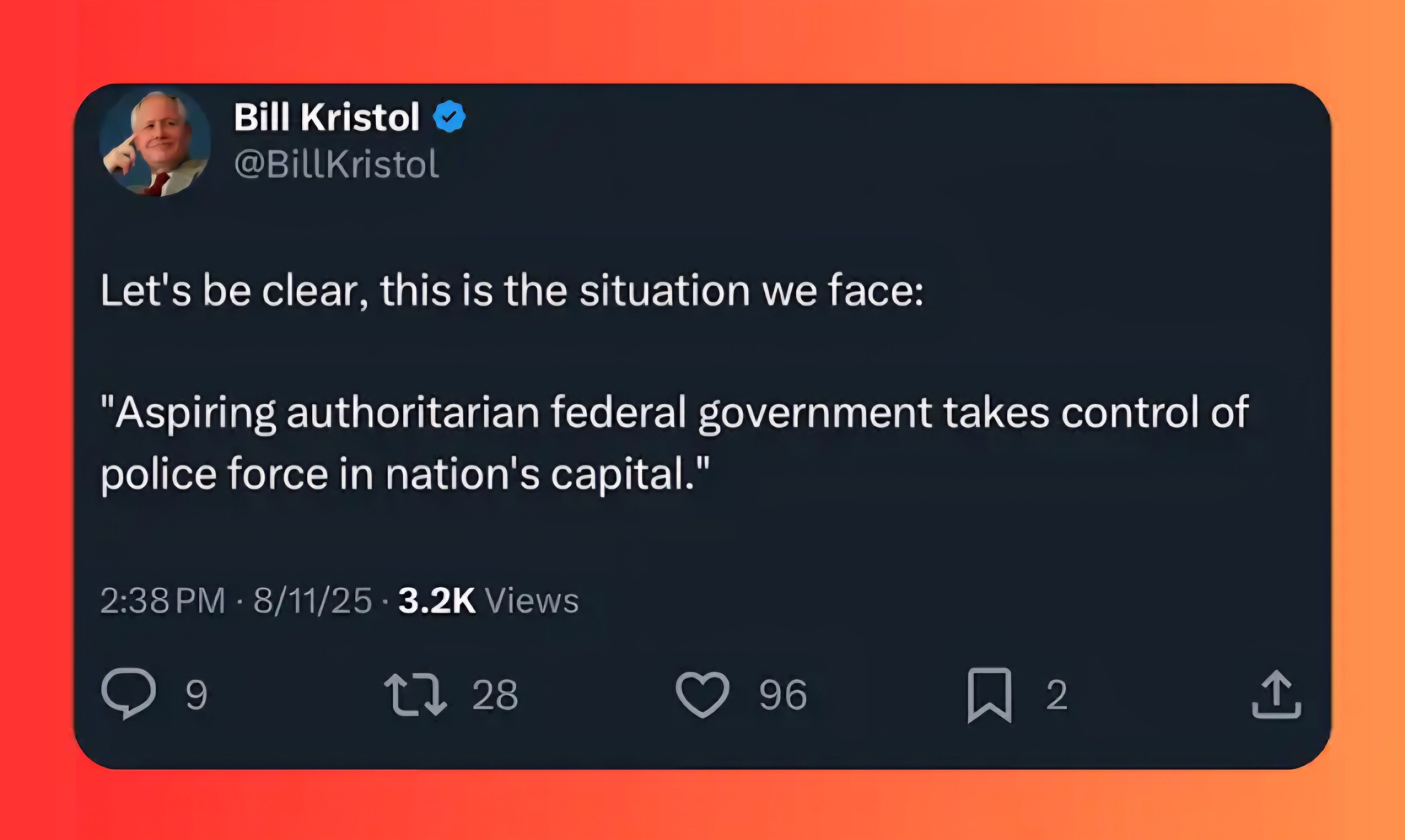 Trump activates the National Guard in Washington, DC exactly 1678 days too late to stop his 2021 insurrection at the US Capitol.