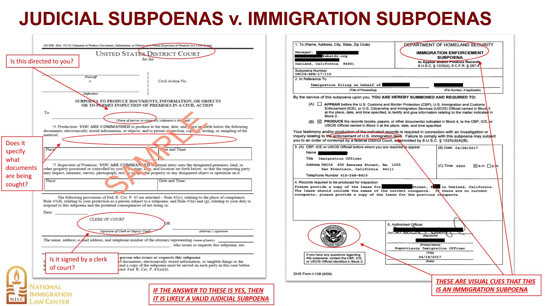 the difference between ICE warrants & subpoenas vs actual legal court warrants & subpoenas