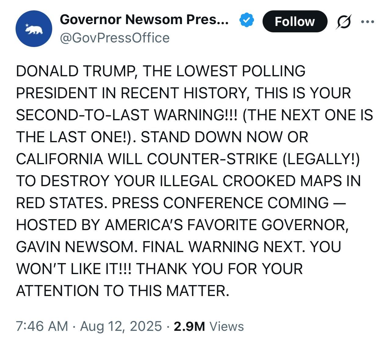 Epic series of tweets by Gavin Newsom. He nailed the style perfectly. Hilarious. 🀣🀣🀣🀣🀣🀣