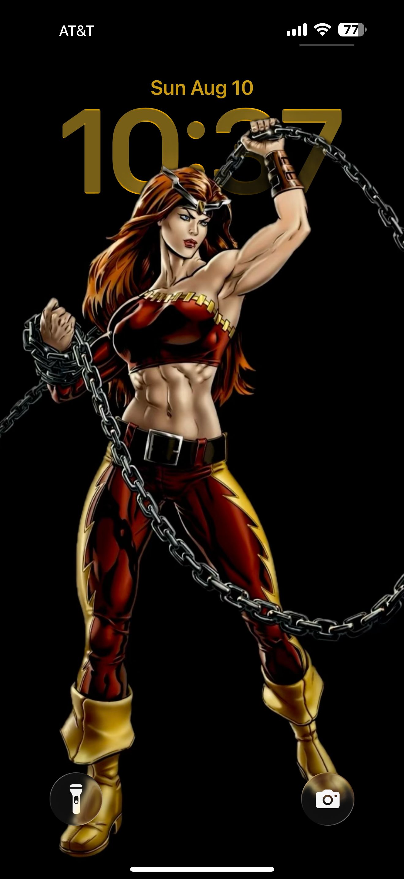 Carries a sword and a three-foot linked chain as weapons