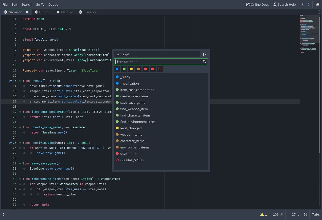 I usually don't install plugins but this one, to turn the default Godot Script editor into more of an IDE is pretty good, tabs on top, navigate methods and quick search https://github.com/Maran23/script-ide #gamedev #godot