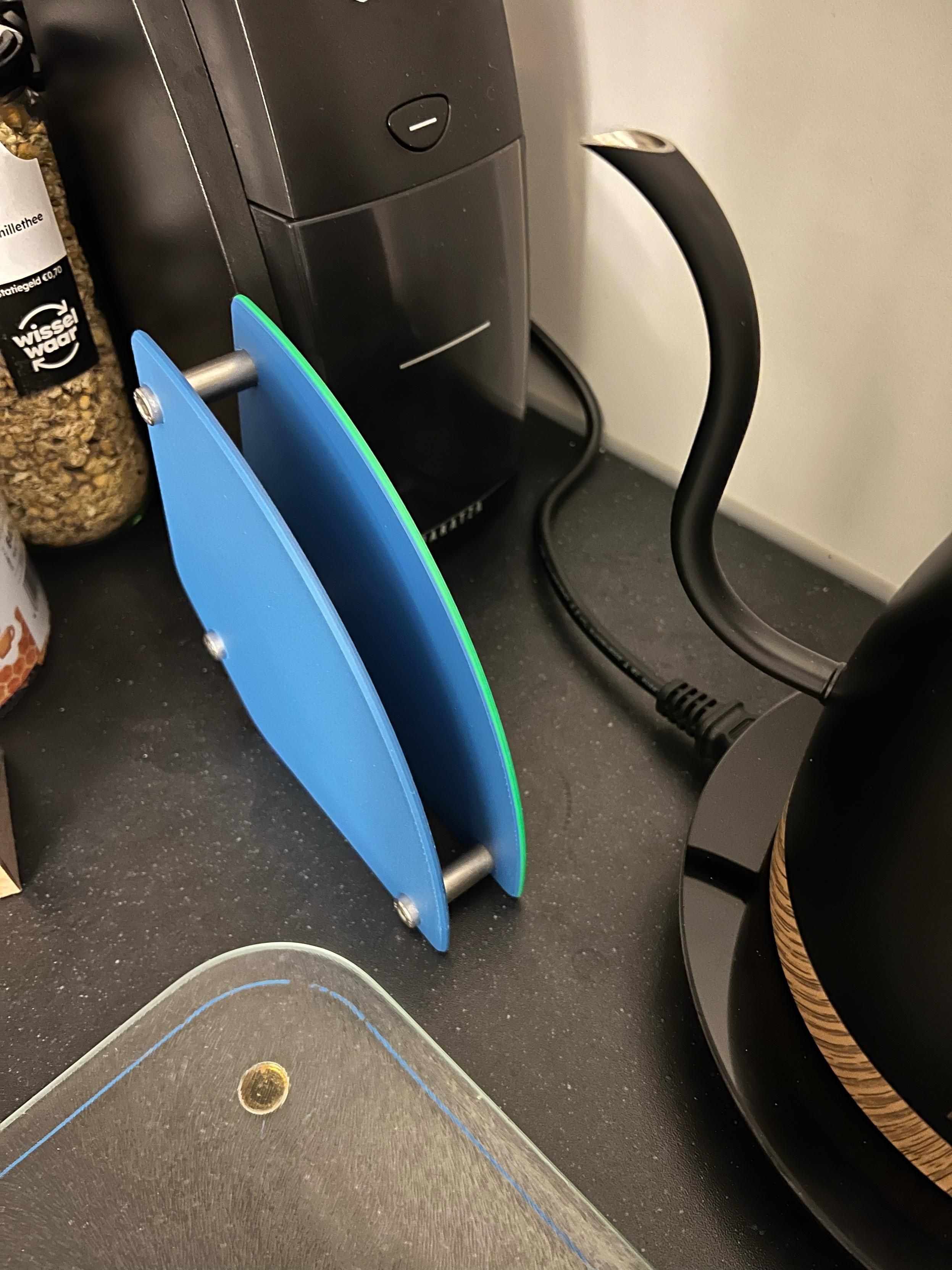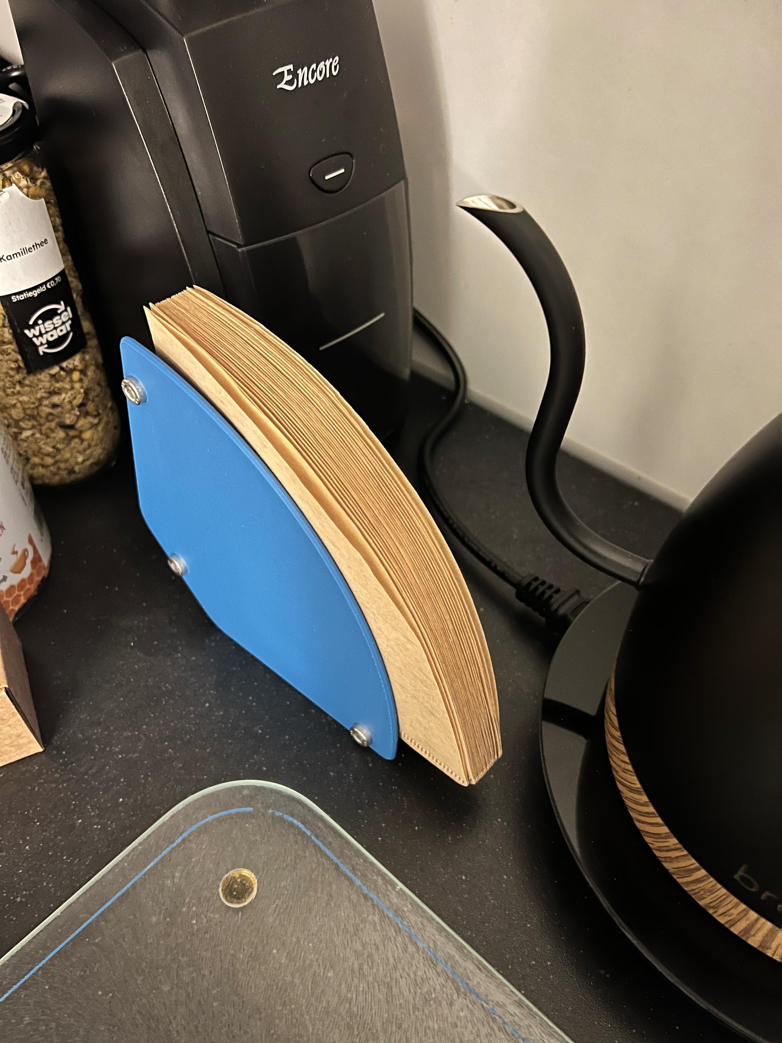 Something to hold coffee filters. I used metal hardware because it is what I know how to do but I think others would have also 3d printed the posts and perhaps press fit them or something.