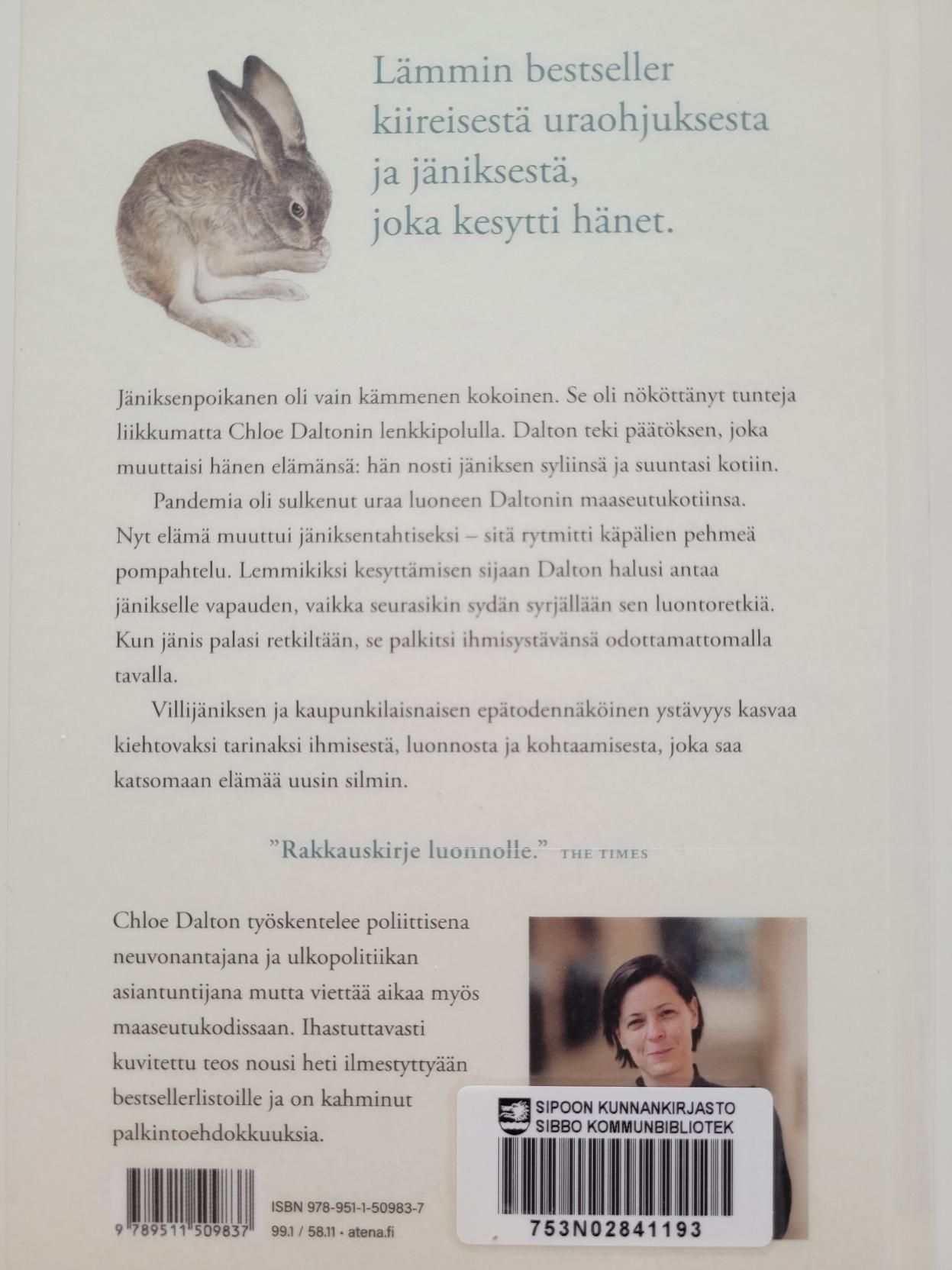 Viime aikoina on tullut luettua enemmän ja vähemmän eeppisiä tieteis- ja fantasiakirjoja, jotka ovat olleet enemmän tai vähemmän hyviä. Olen kuitenkin huomannut, että mieluisimpia lukemiskokemuksia ovat olleet viihteelliset tietokirjat. Näistä mainittakoon keväällä ilmestynyt Chloe Daltonin Ystävänä jänis (Raising Hare), joka on Atenan kustantama ja Ari Väntäsen suomentama.