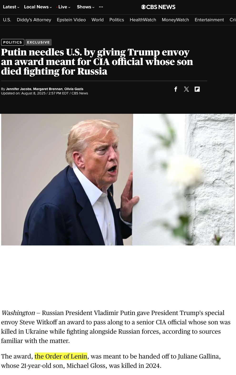 The Order of Lenin was the highest civilian award of the Soviet Union, but it was discontinued after the dissolution of the USSR in 1991. So, either Putin was being extra-extra symbolic, or CBS News got/reported some bad info. https://www.cbsnews.com/news/putin-award-order-of-lenin-american-ukraine/
