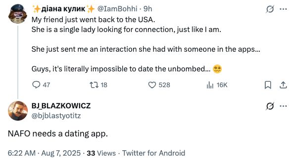 βmy love language is organizing dogpile raids. must have harassed at least 15 strangers online today. Dealbreaker: anyone who doesnβt recognize my OSINT superpowers #NAFOTinderβ