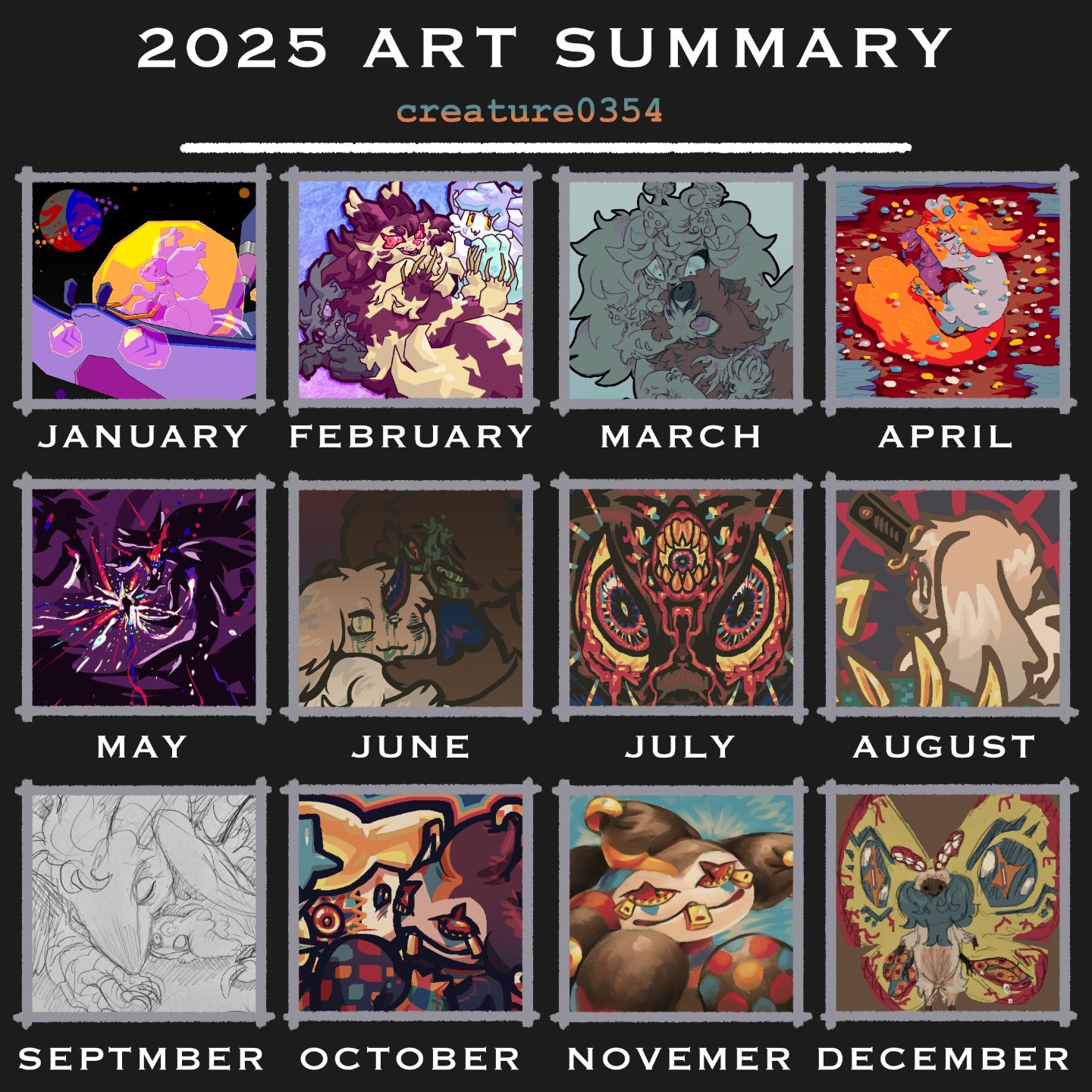 2025 art summary time! this year has both flown by and felt so long, hope to see yall next year and do the same art thing! some notes below
