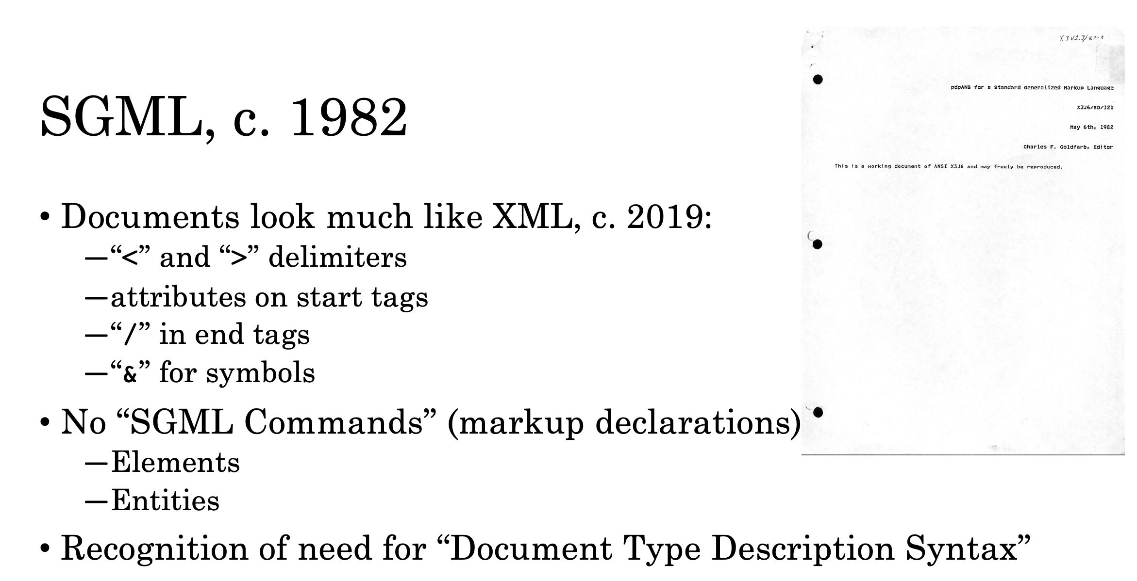 Poring over SGML Handbook from Goldfarb himself (Goldfarb is the βGβ in GML).