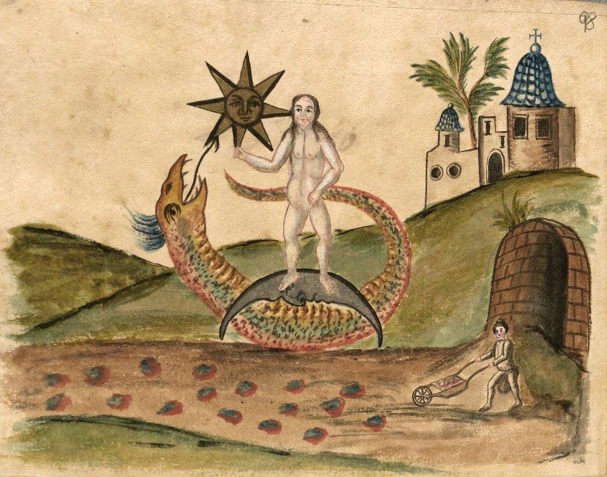 Illustrations from the beguiling Clavis Artis, a German alchemical manuscript which claims to hail from the 13th century and have pages made from dragon skin: https://publicdomainreview.org/collection/clavis-artis