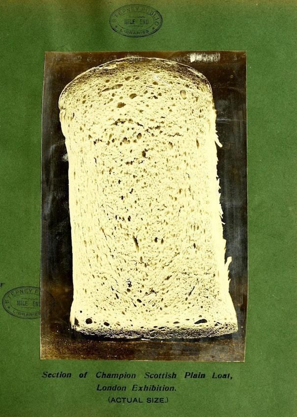 Images from Owen Simmons' The Book of Bread (1903), a reference manual for commercial bakeries which includes striking pasted-in silver bromide prints and dazzling chromolithographs of bread. Read the book, and see more of its images, here: https://publicdomainreview.org/collection/book-of-bread