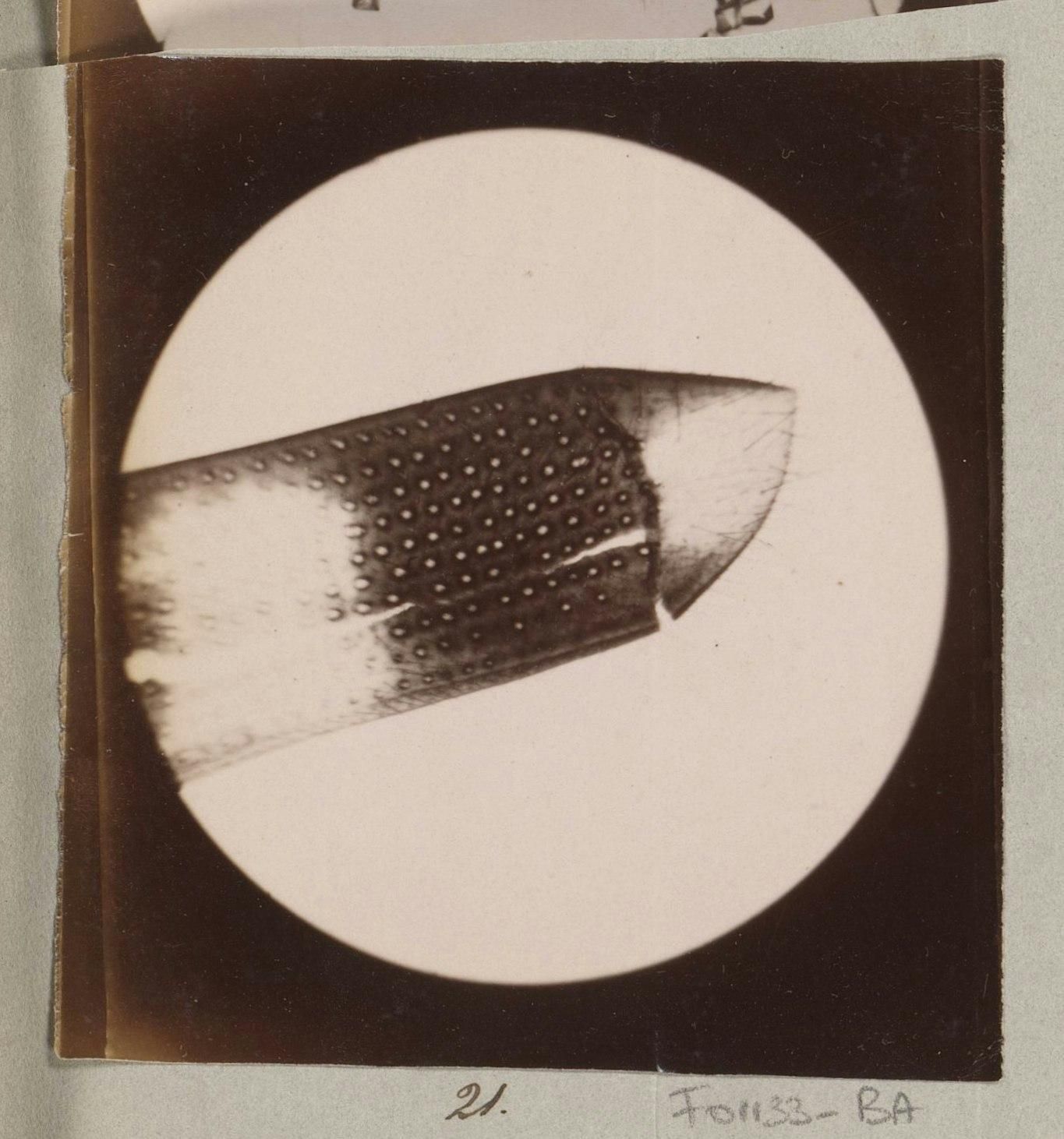A few of the 60+ micrographs found in a mysterious album (1887β88) belonging to Marinus Pieter Filbri. The curlicue of a mothβs antenna, the menacing dagger of a honeybeeβs stinger, the architectural gridding of a flyβs eyeball... more here: https://publicdomainreview.org/collection/marinus-pieter-filbri-microscopy/