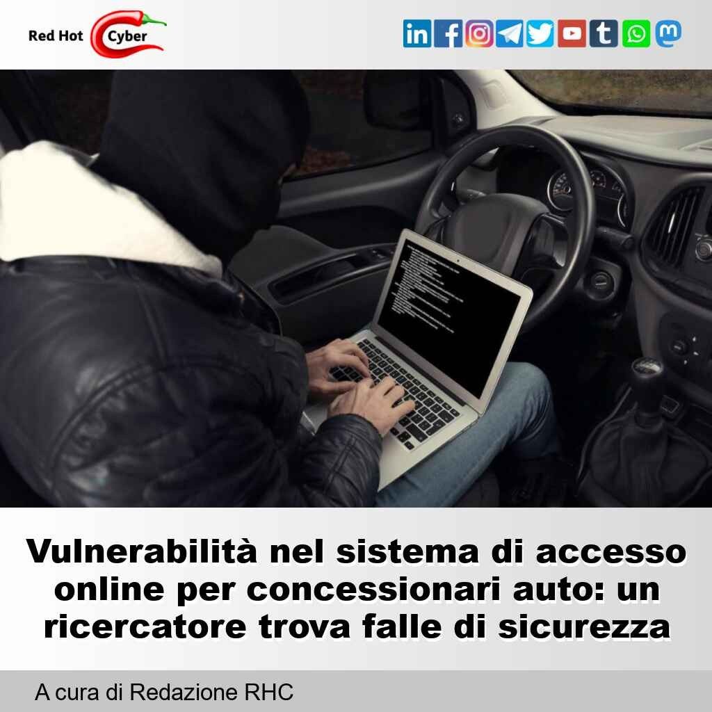 Link all'articolo : https://www.redhotcyber.com/post/vulnerabilita-nel-sistema-di-accesso-online-per-concessionari-auto-un-ricercatore-trova-falle-di-sicurezza/