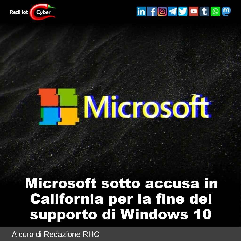 Link all'articolo : https://www.redhotcyber.com/post/microsoft-sotto-accusa-in-california-per-la-fine-del-supporto-di-windows-10/