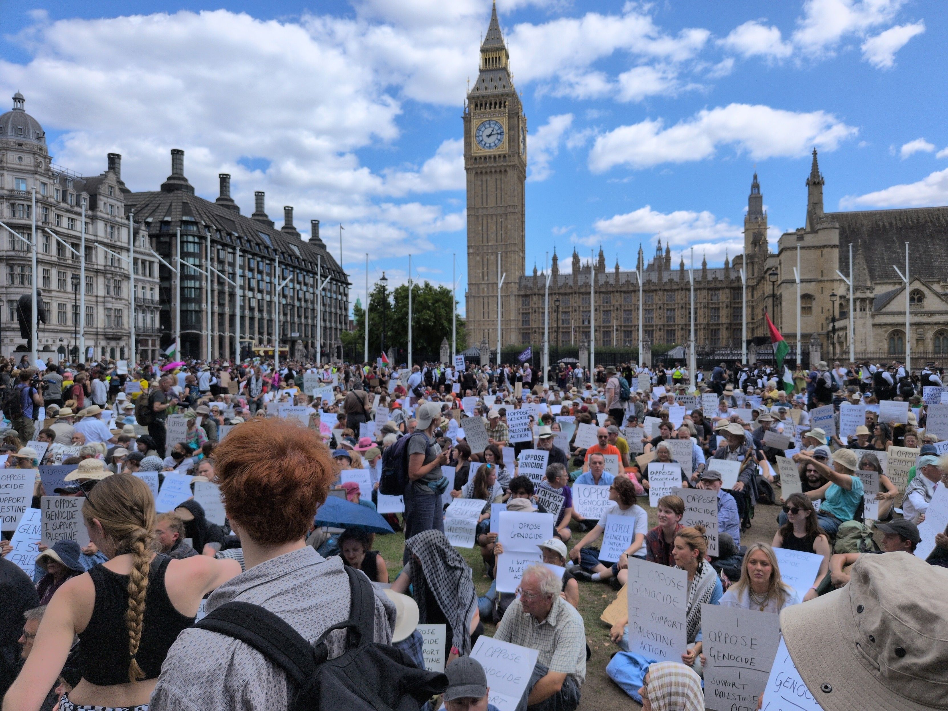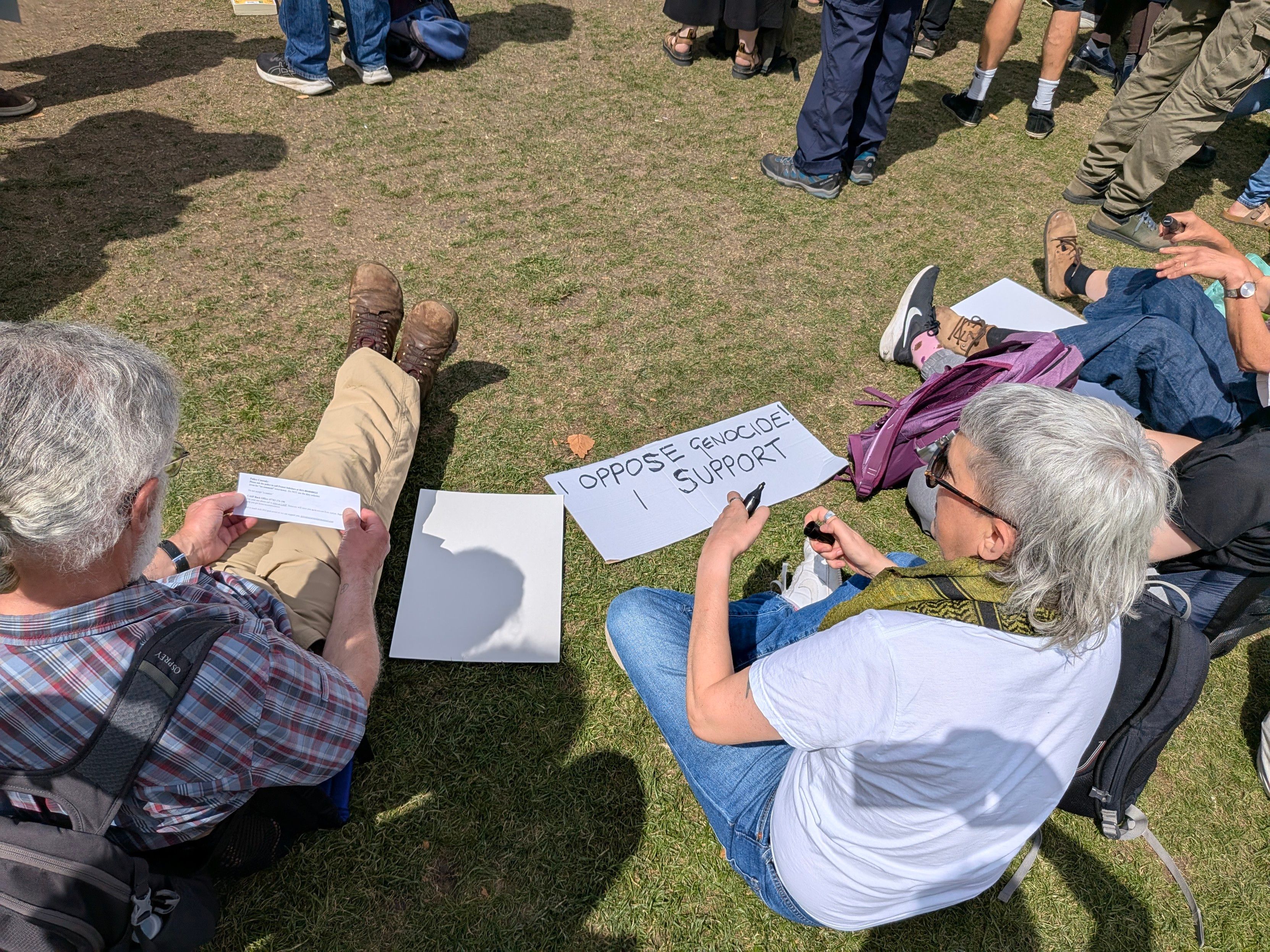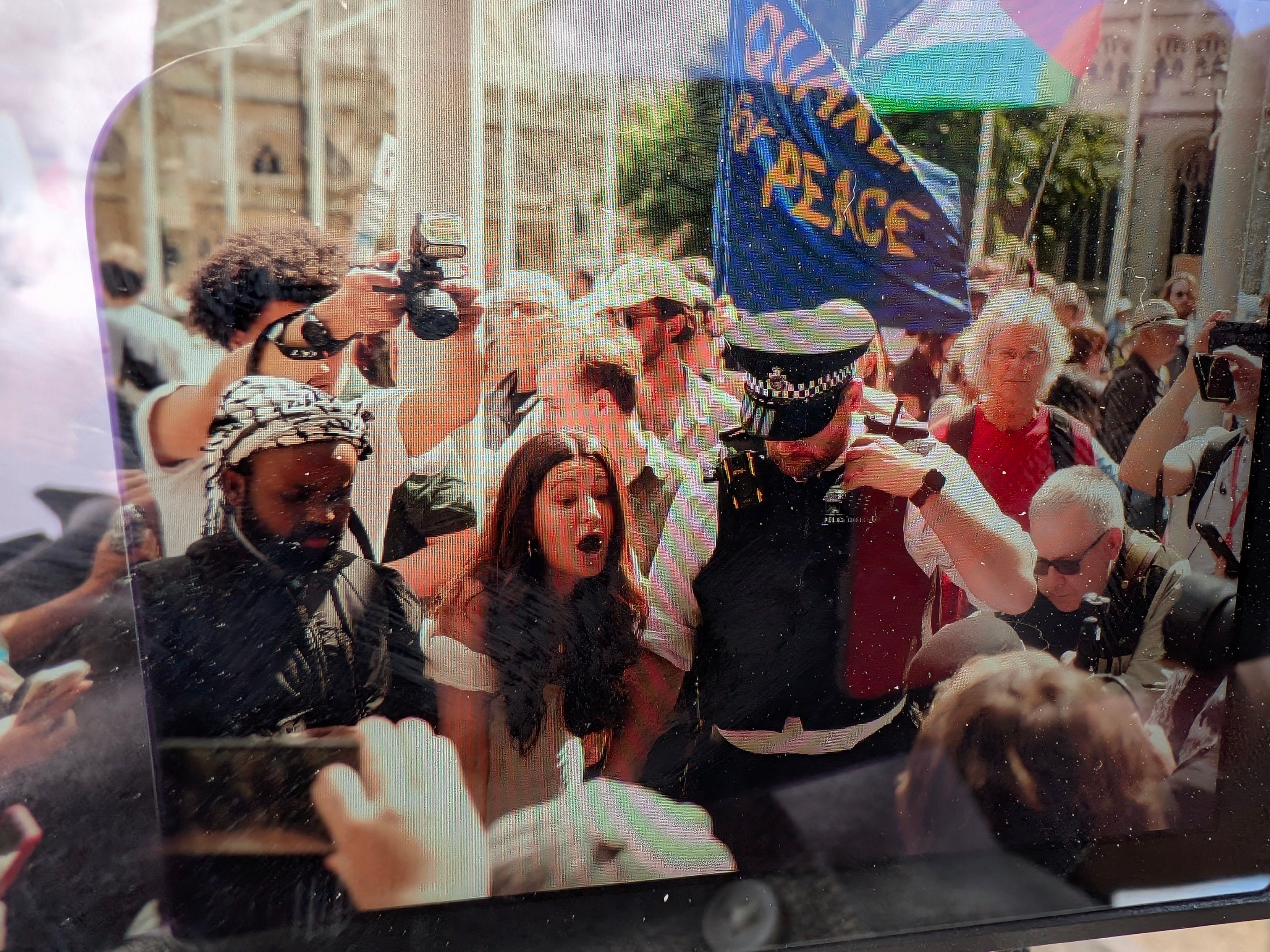 The main group are peaceful and dignified but there's a small area where things are getting heated. I'm in the midst of that group but I think I'm going to get out of here soon. It's extremely uncomfortable.