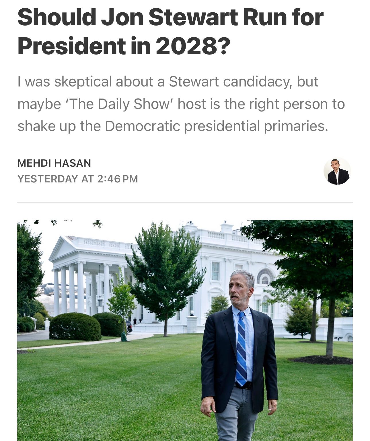 From @mehdirhasan.bsky.social@bsky.app : βThe clamor for a Jon Stewart presidential candidacy is growing.β