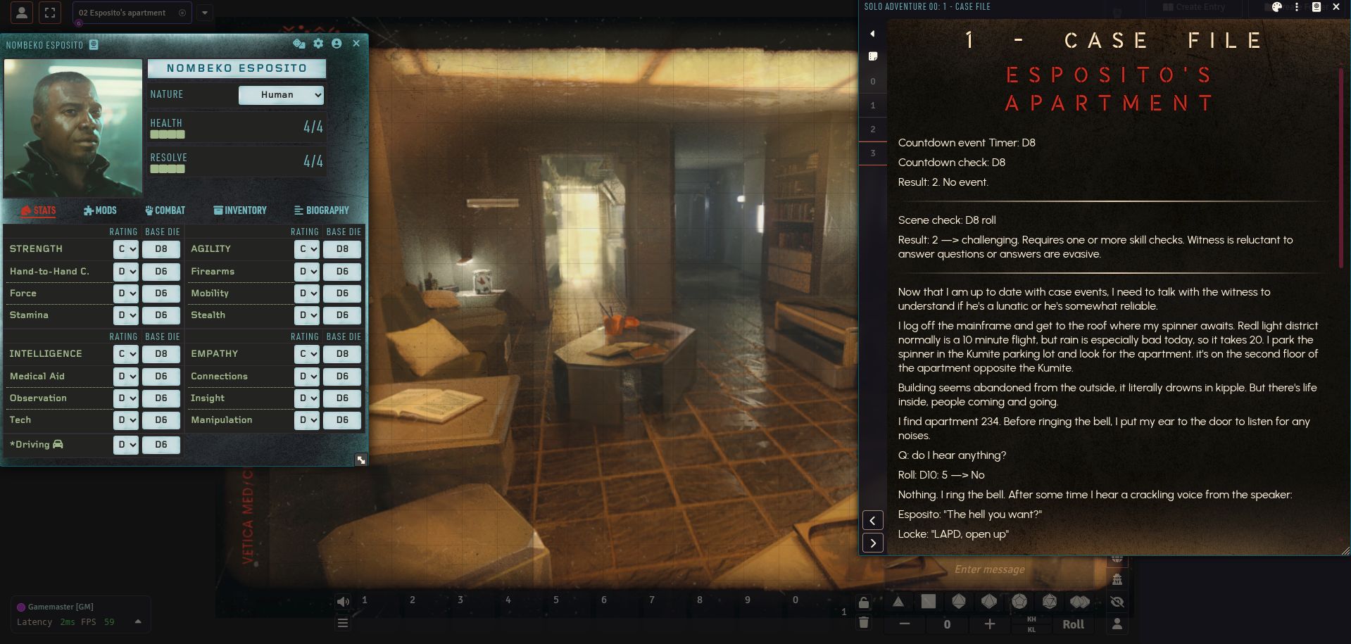Ok, ci sto prendendo gusto. #FoundryVTT mette a disposizione molti strumenti per semplificare la vita del giocatore in solitaria, in particolare se si hanno a disposizione i moduli ufficiali del sistema di gioco --> un sacco di artwork e di tabelle "rollabili" per generare eventi casuali.