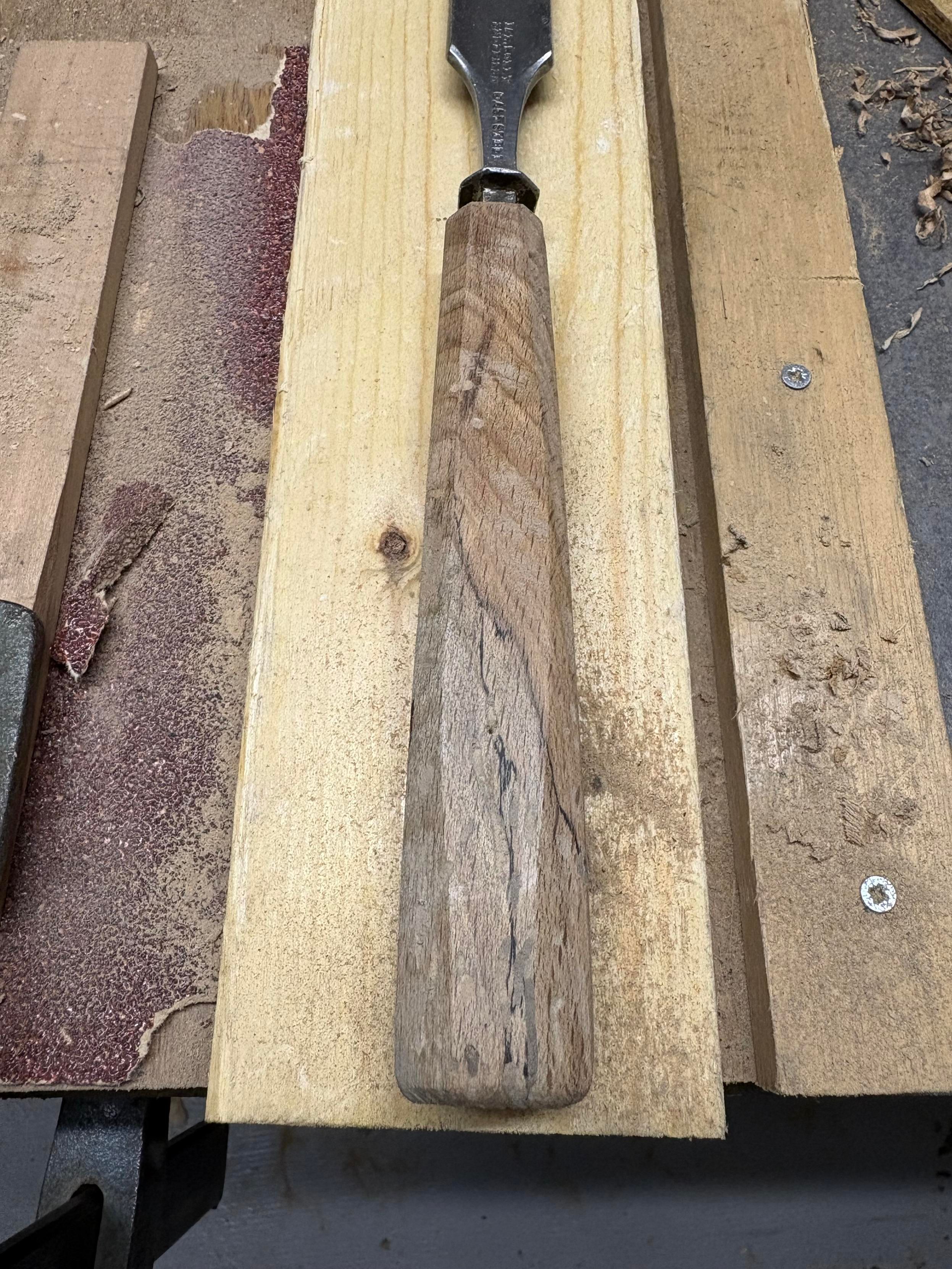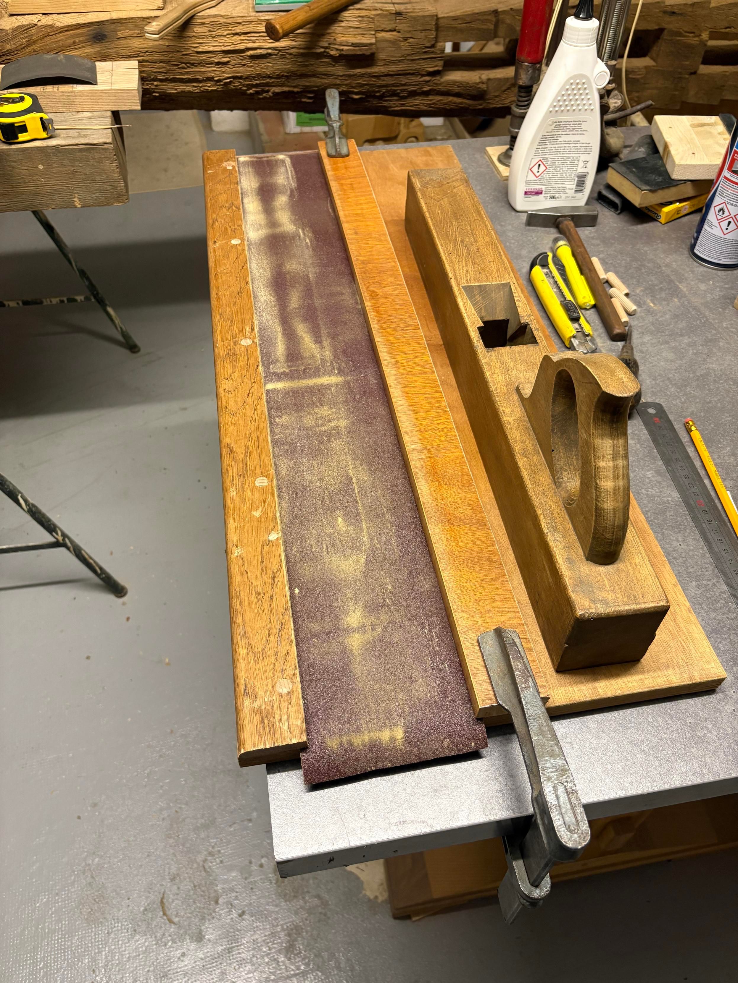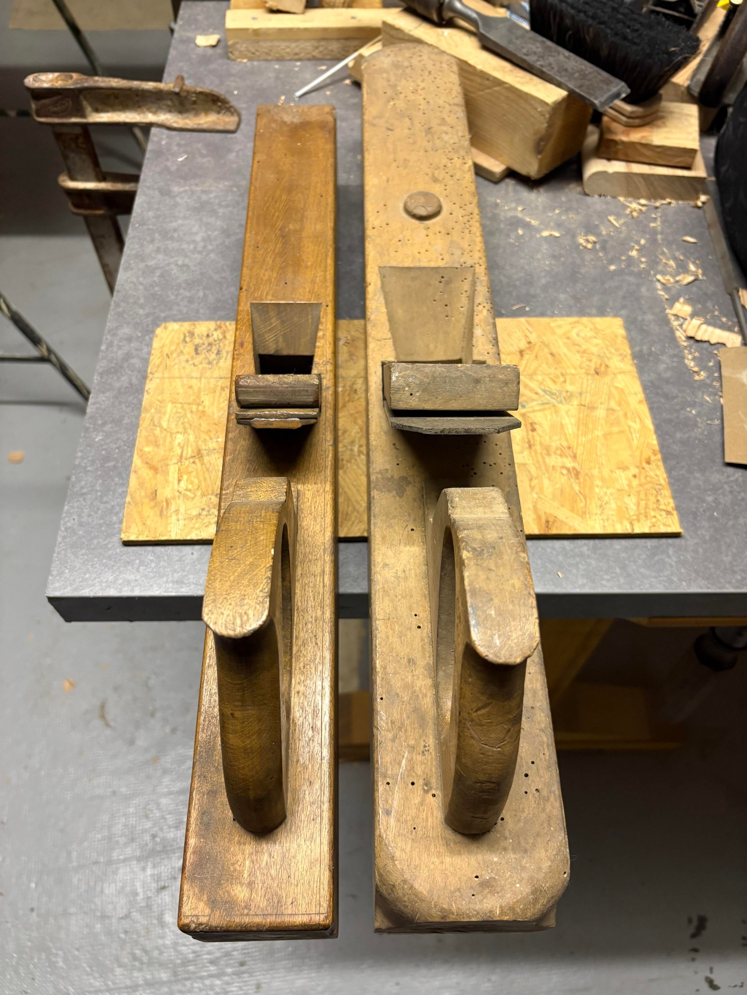 Also in the works is a restore of this riflard (wooden fore plane) on left. This and the gouge Iβm putting a handle on will be tested on the post later, thus why these tools are getting attention at the mo.