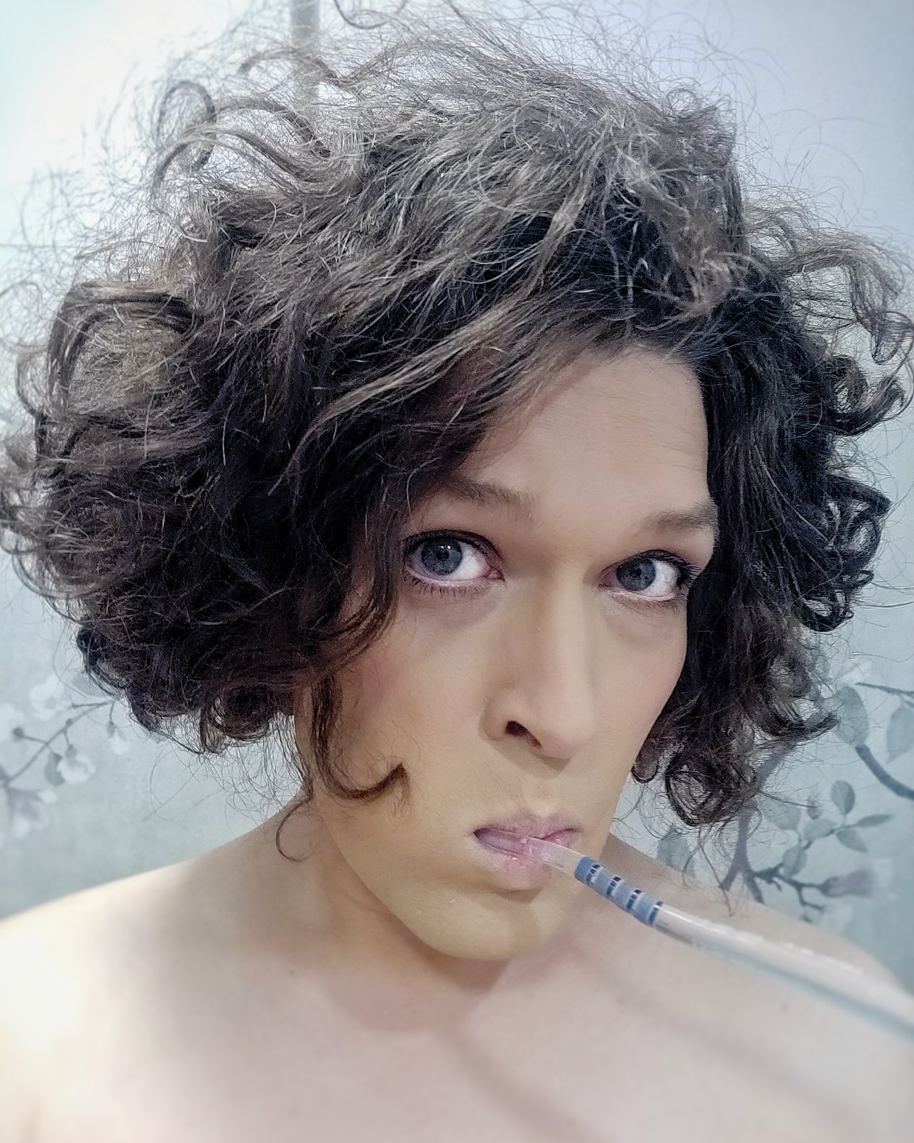 me in makeup looking cutesy with toothbrush in mouth