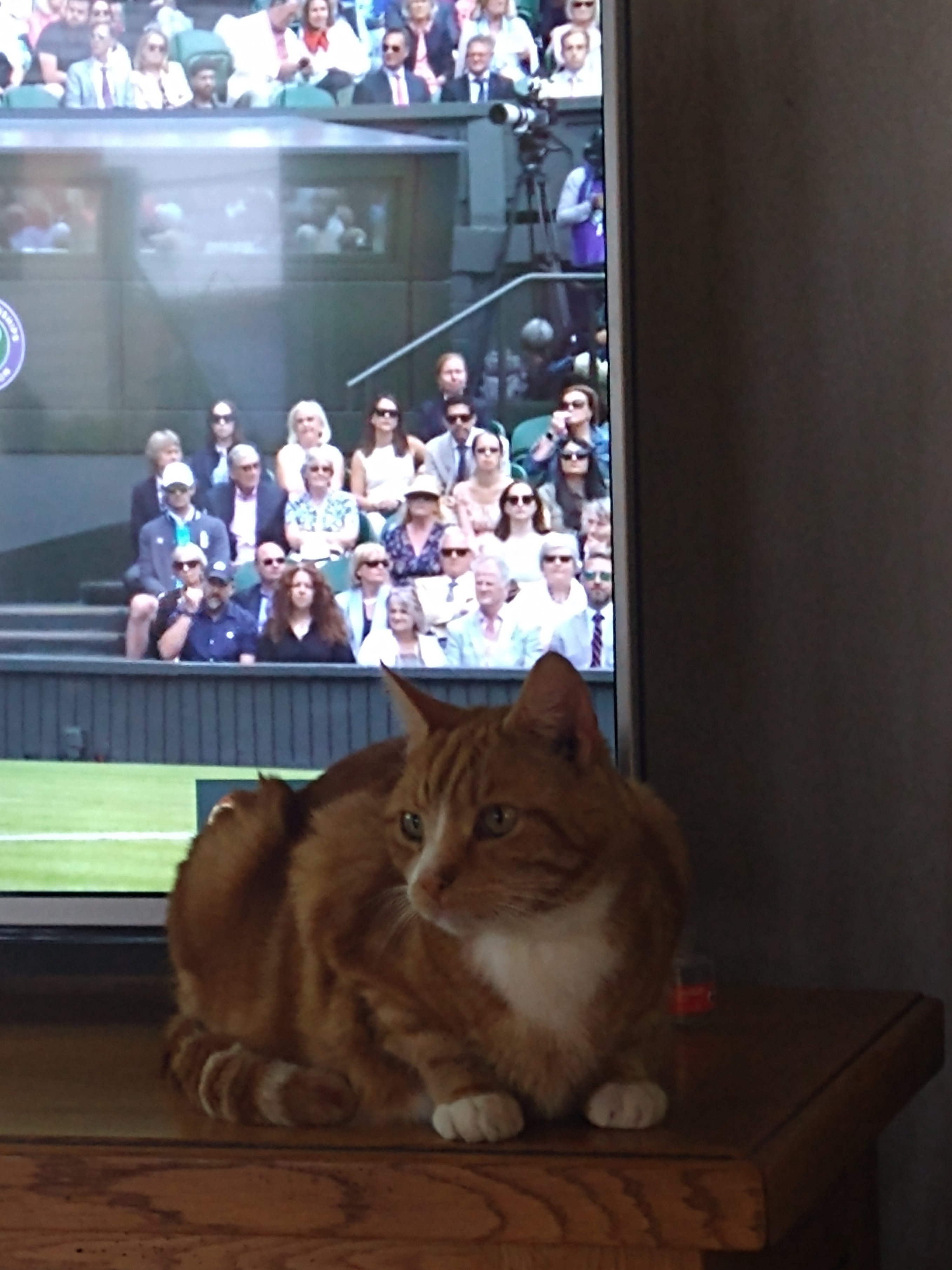 Ginger Tom cat sitting in front of a TV