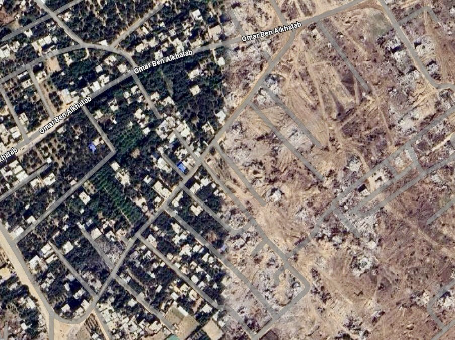 Two images beside each other from Google maps displaying the total damage done by Israelβs obliteration.