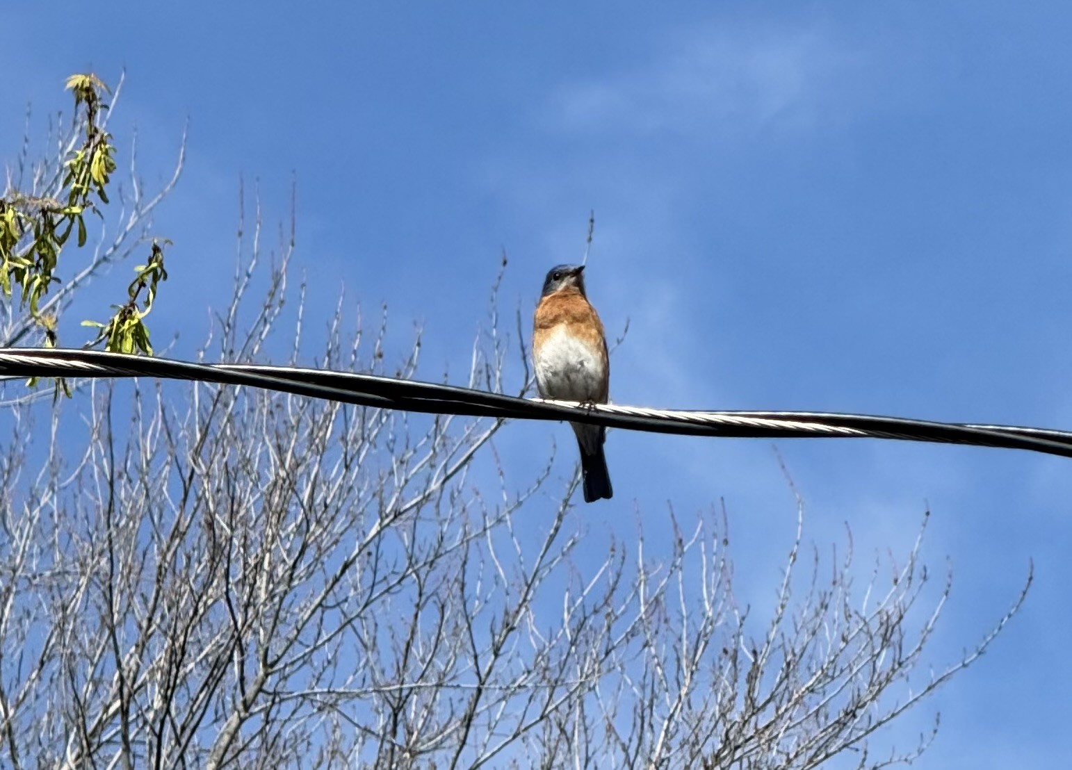 Mr bluebird perched on our power line keeping watch