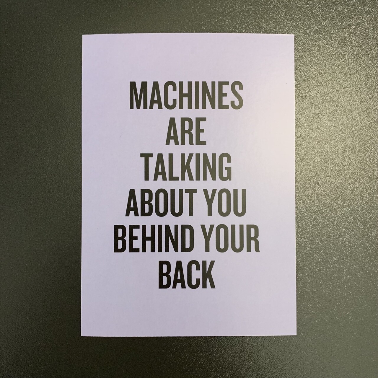 Postcard that says βmachines are talking about you behind your backβ.
