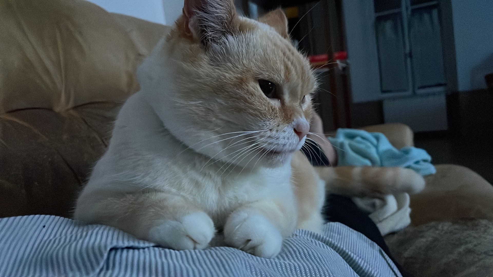 Picture of my cat resting on my belly while Iām on the couch
