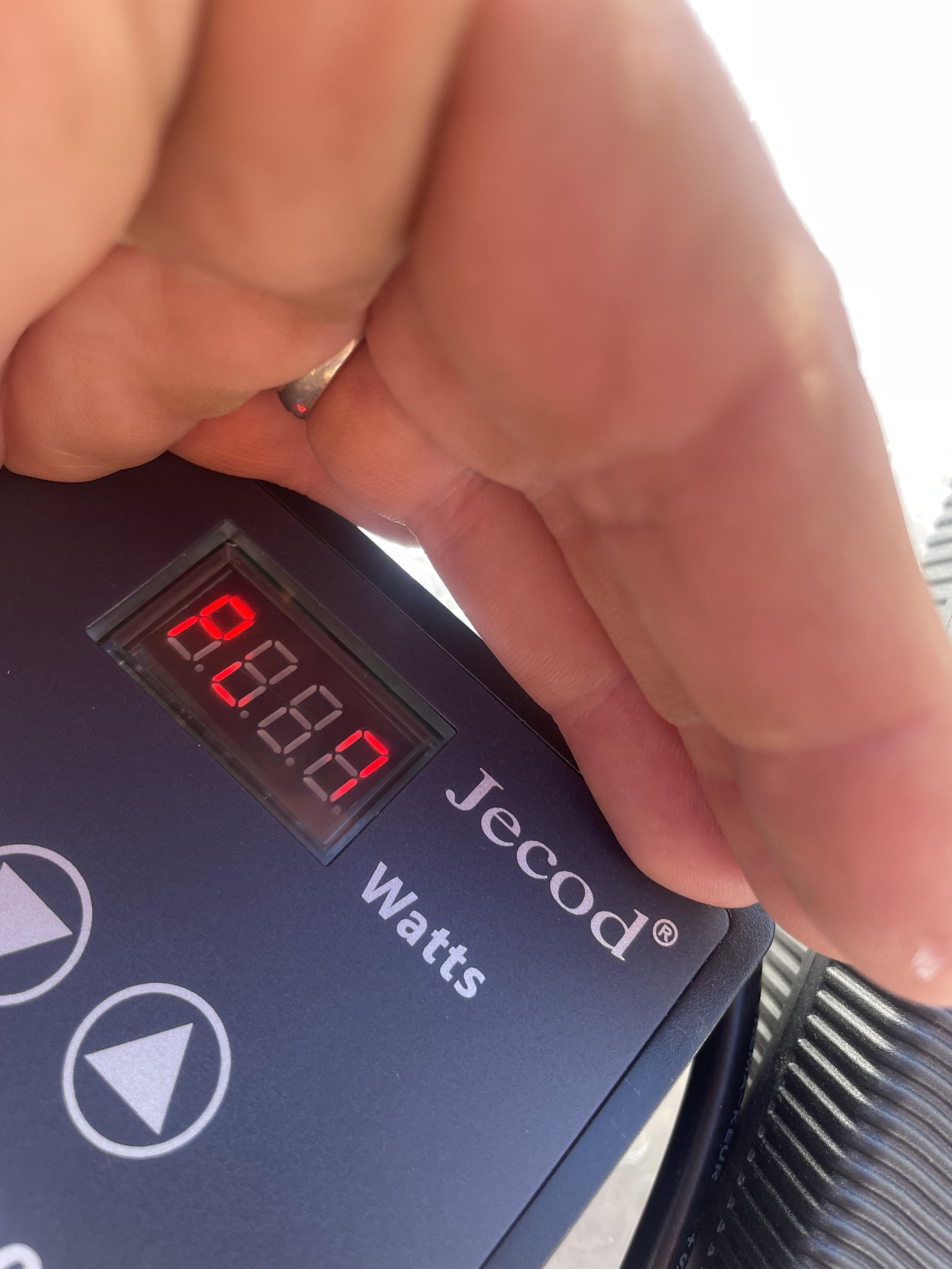 My hand is shading over a small controller box with a display reading P 7 with two numbers missing. There are up and down buttons.
