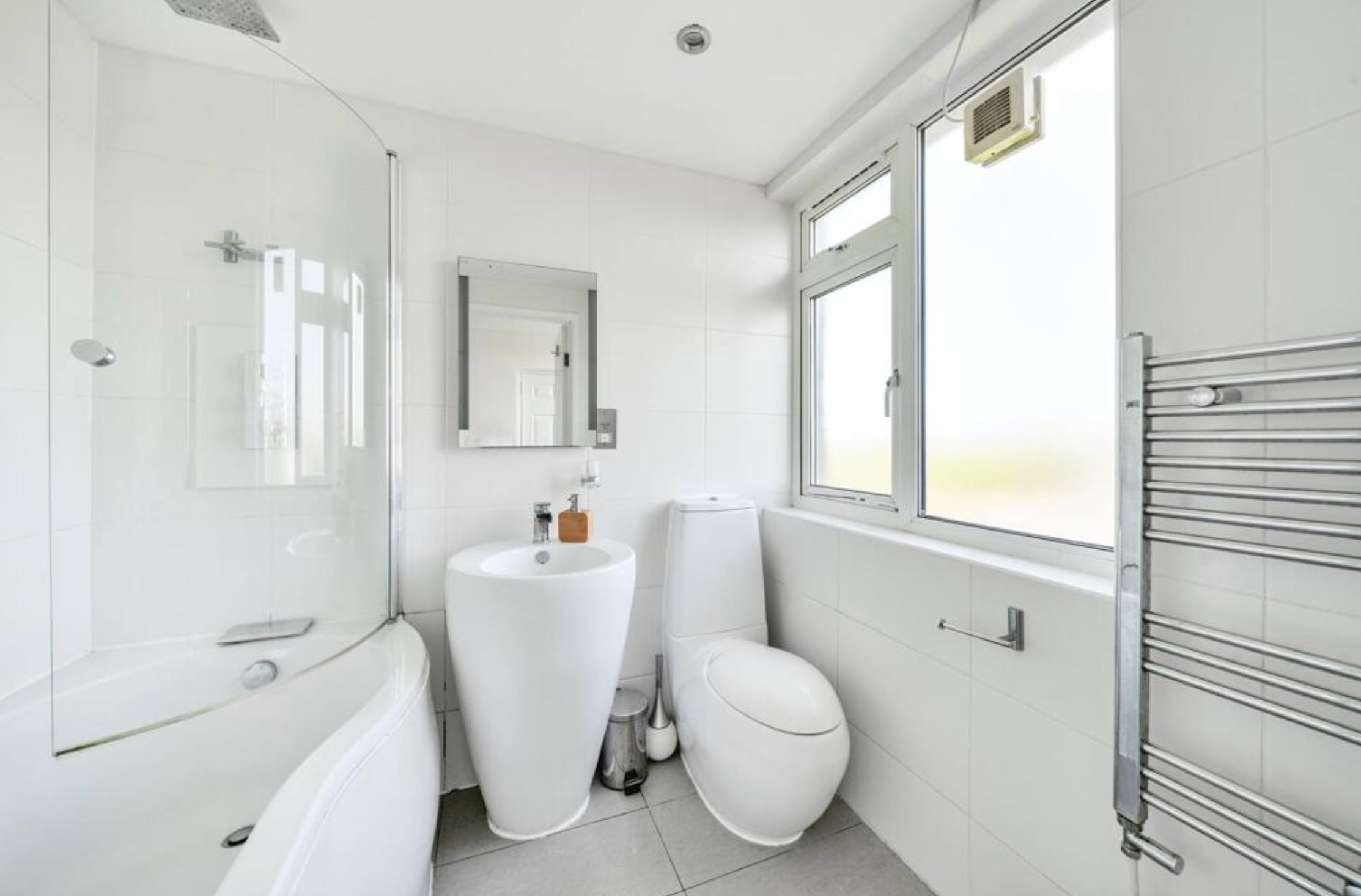 An all white bathroom with a toilet that looks long and very narrow. It is right next to the wall and is a bulbous round shape.
