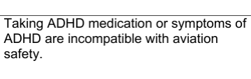 Taking ADHD medication or symptoms of ADHD are incompatible with aviation safety.