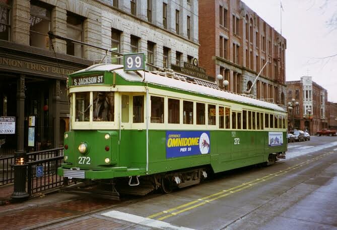 Melbourne W2 class tram in use on the Waterfront Streetcar heritage trolley line in Seattle, Washington