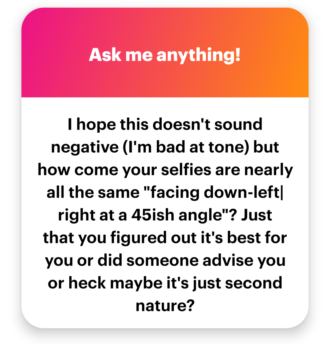 Why are my selfies at a 45 degree angle and in 3/4 profile?