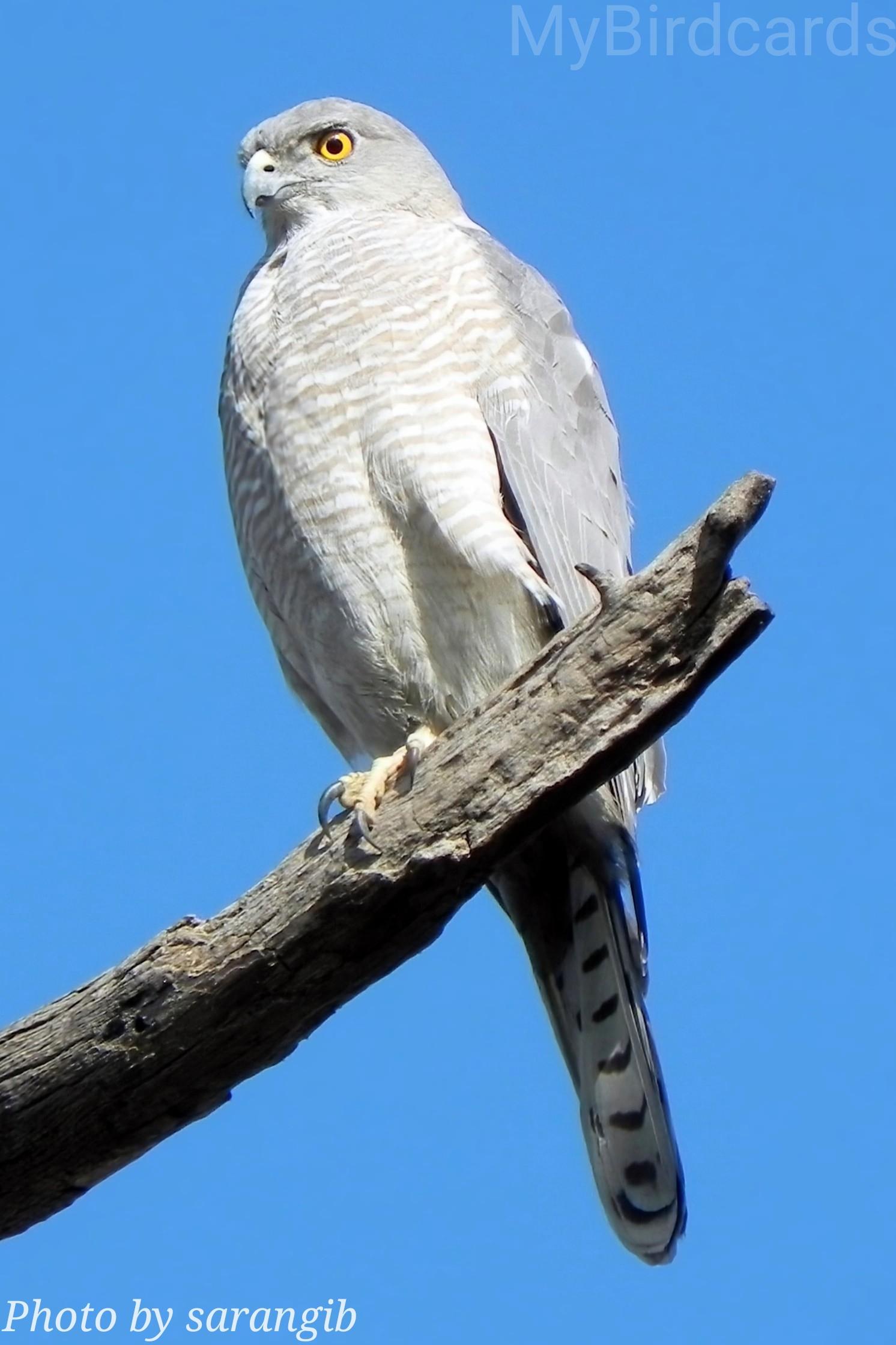 "I'm a small, slender bird of prey found in Asia and Africa known for my grey plumage and pale, finely-barred breast?" What bird am I? 📷: Photo by sarangib via Pixabay