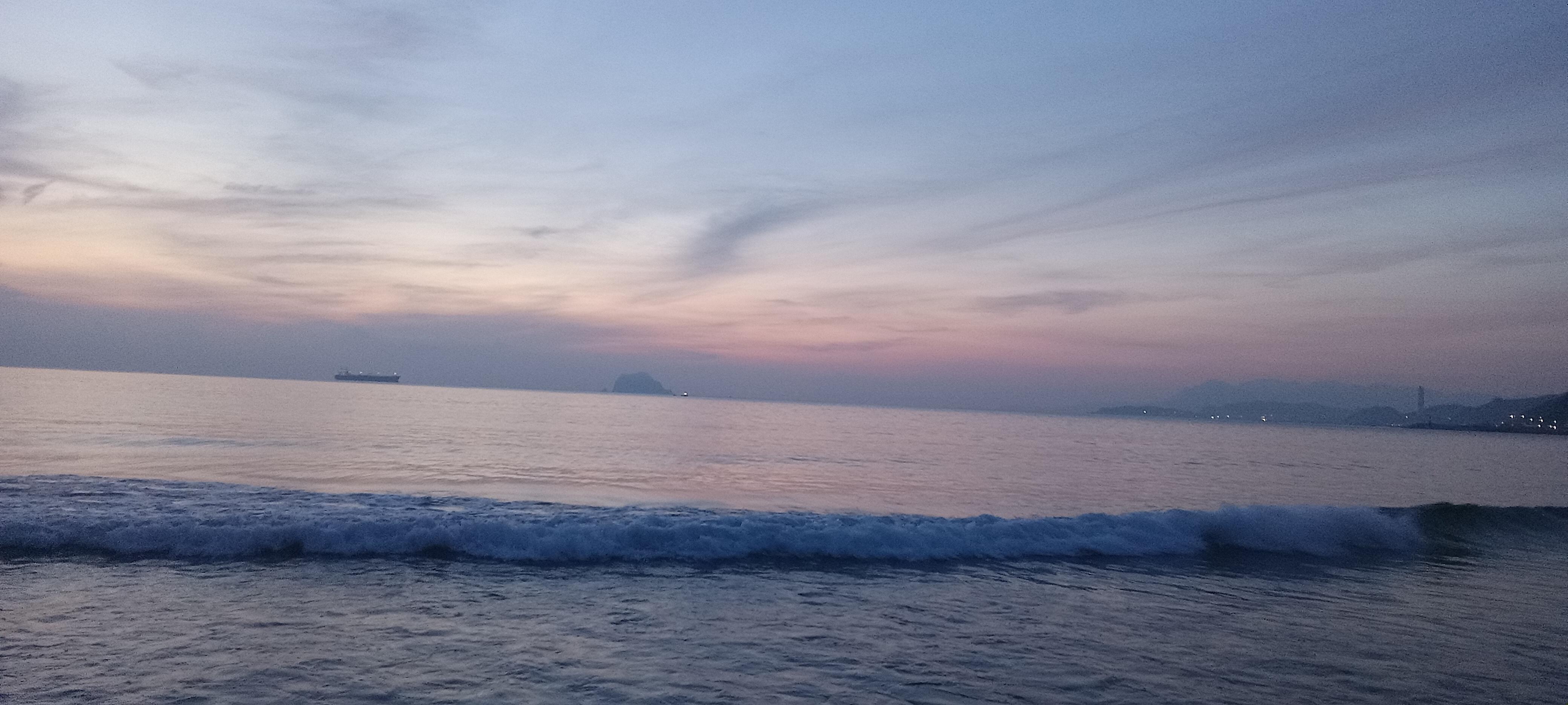 Gentle waves rolling in on a beach with a bit light coming in on the horizon