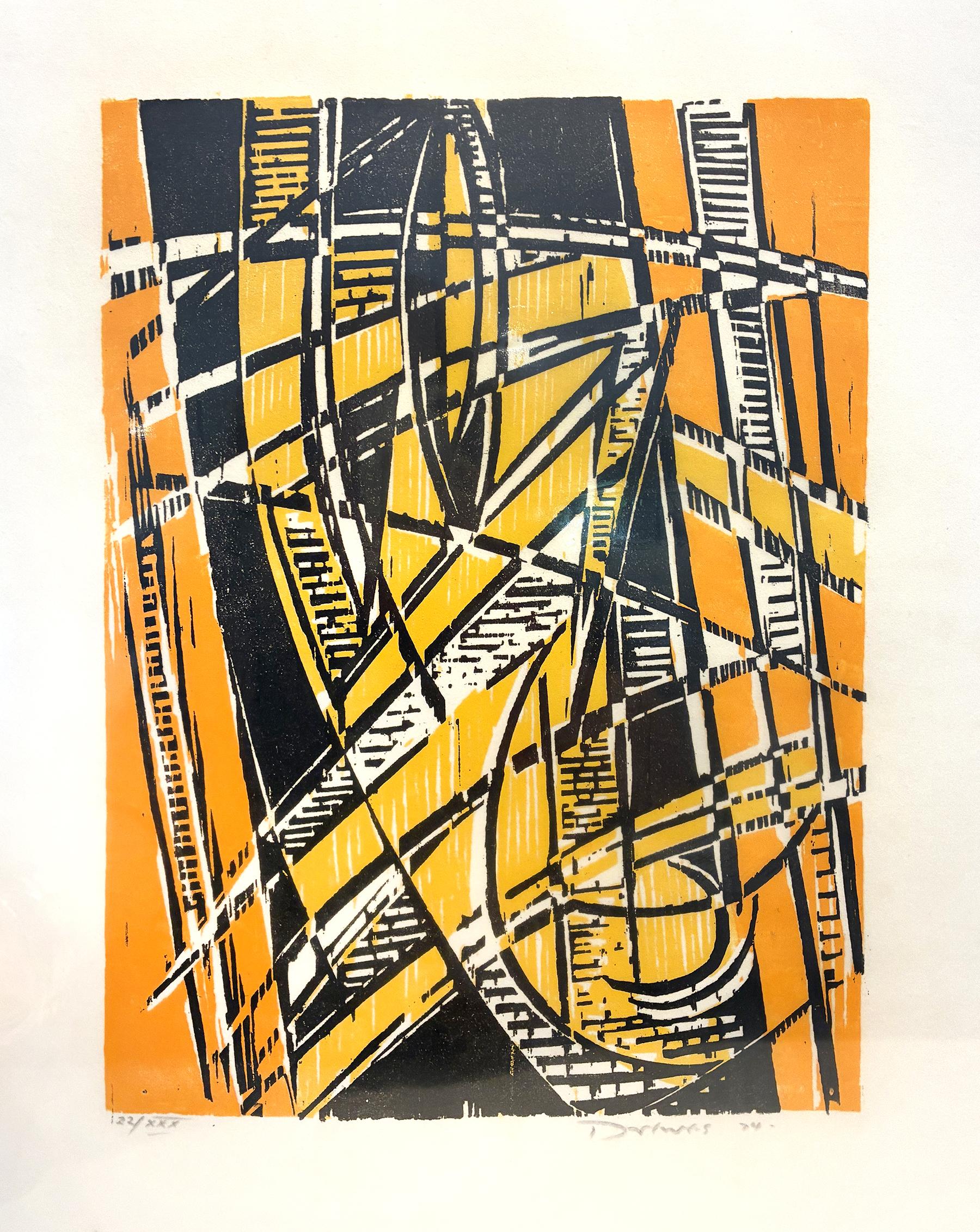 Abstract image in orange, black, yellow, and white