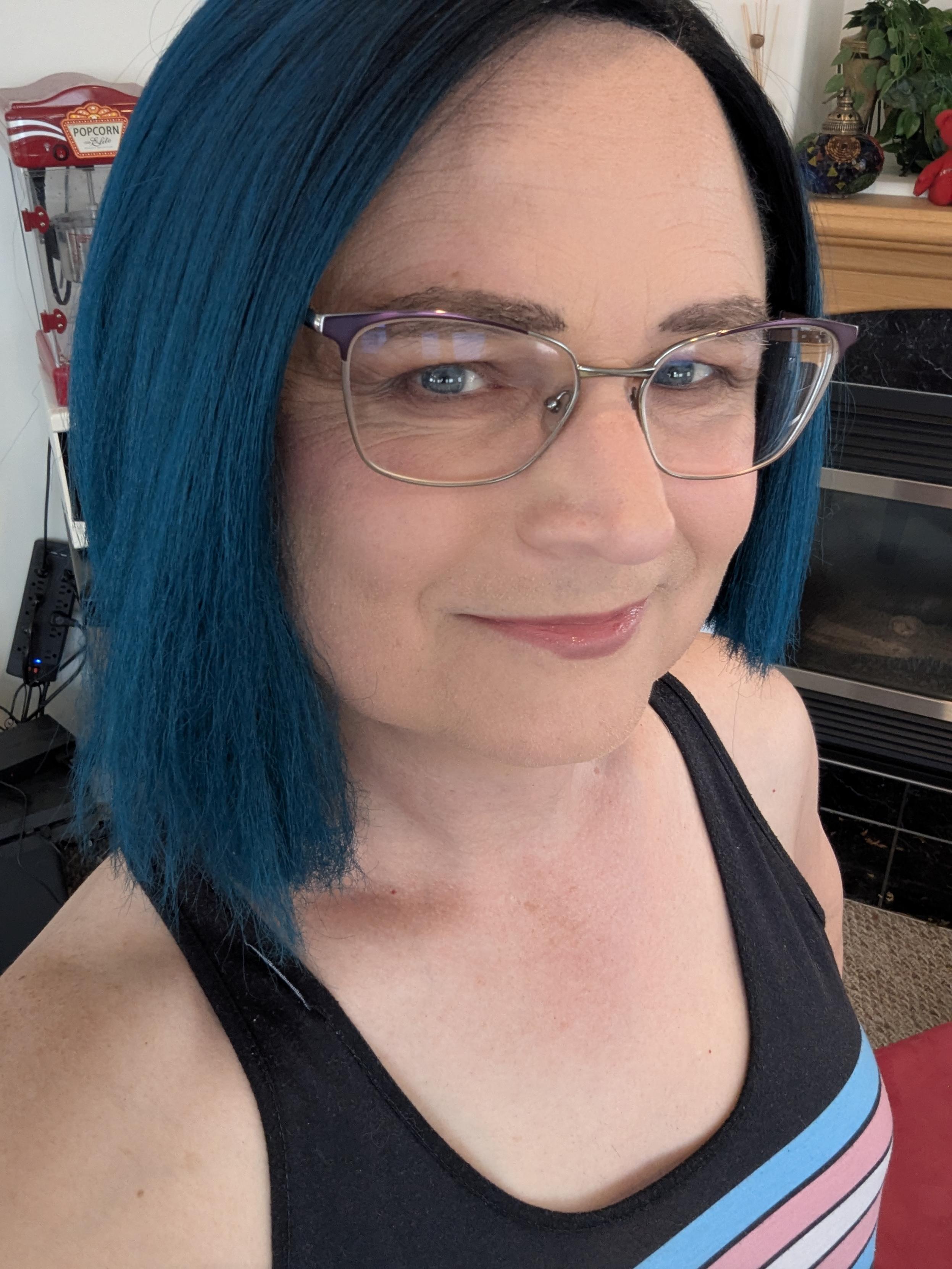 Another selfie of me with smoky eyeshadow and my blue wig