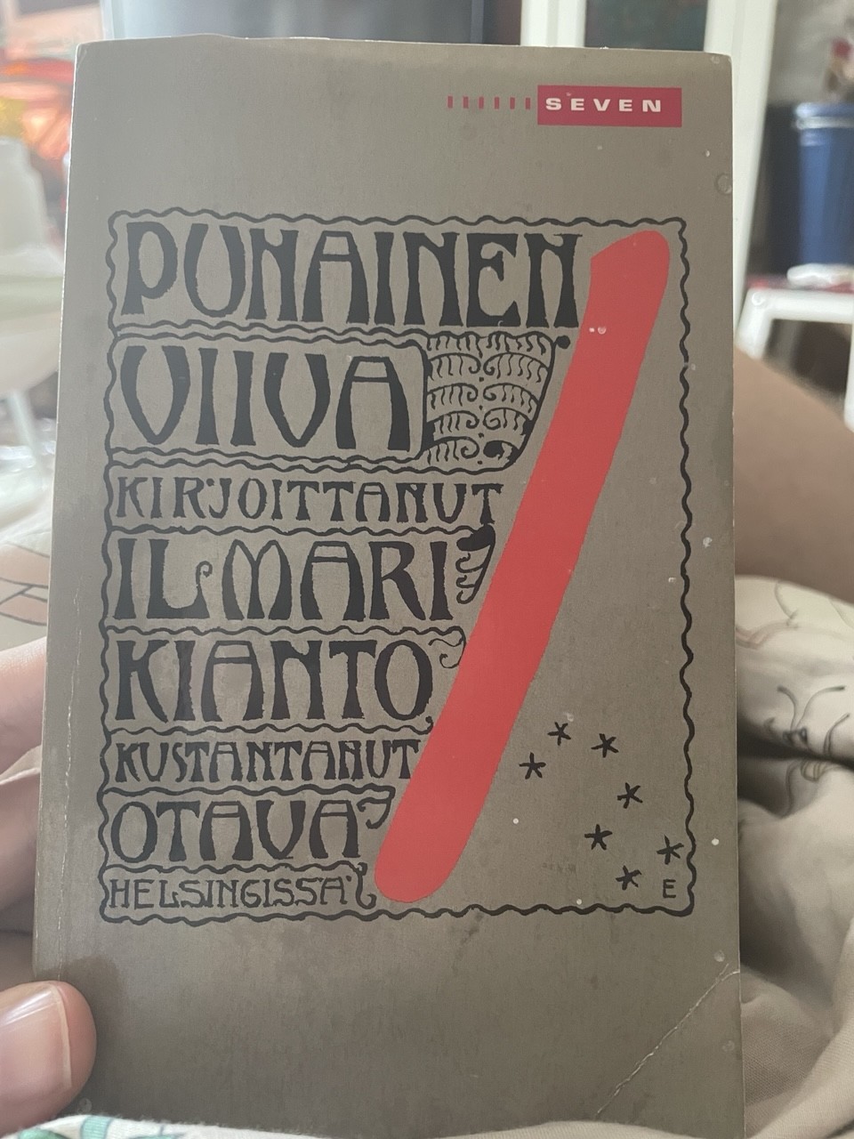 harmaakantinen kirja jota halkoo punainen viiva. Kirjoittanut Ilmari Kianto. Kustantanut Otava HelsingissΓ€.