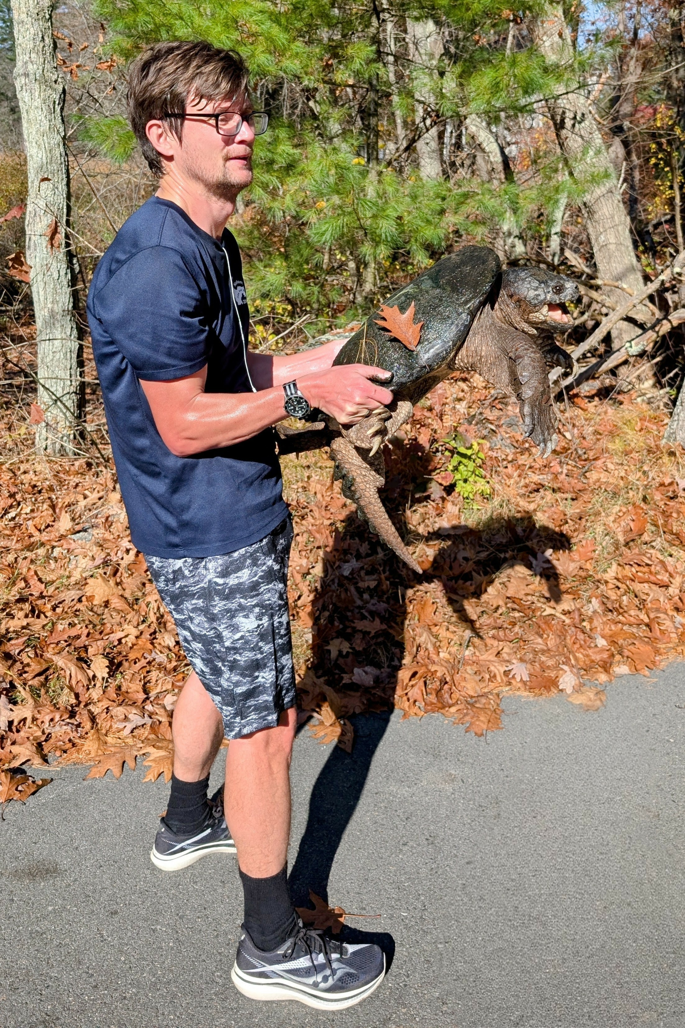 Me holding a giant common snapping turtle.