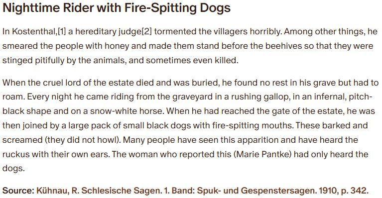 German folk tale "Nighttime Rider with Fire-Spitting Dogs". Drop me a line if you want a machine-readable transcript!