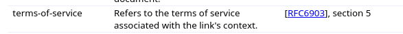 terms-of-service, Refers to the terms of service associated with the link's context, rfc6903, section 5