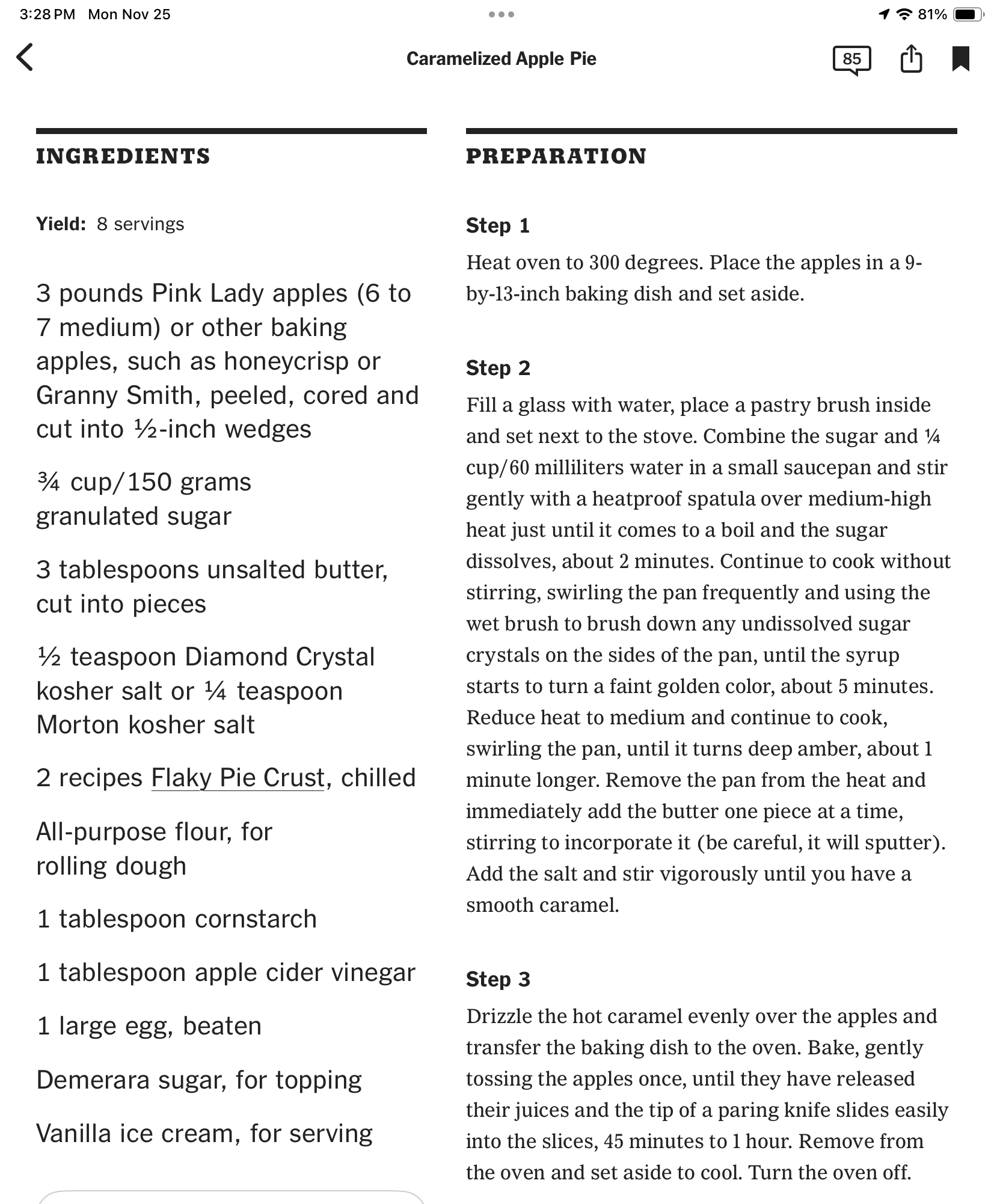 Caramelized Apple Pie recipe