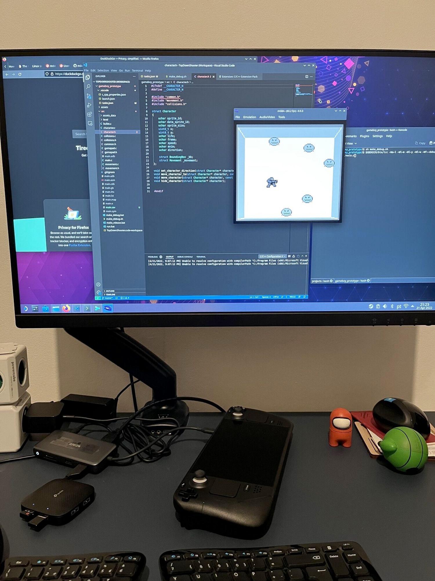 Desk workstation using a SteamDeck with a gameboy SDK development suite