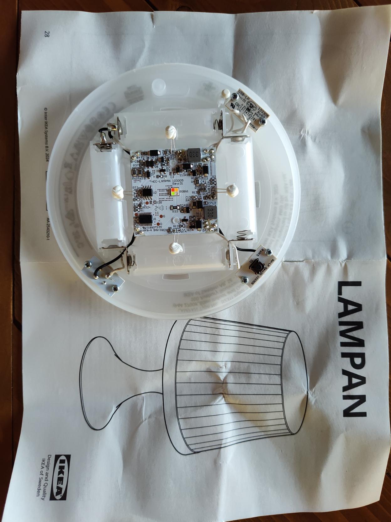 Circuito stampato con elettronica di controllo e LED della lampada. Parte superiore.