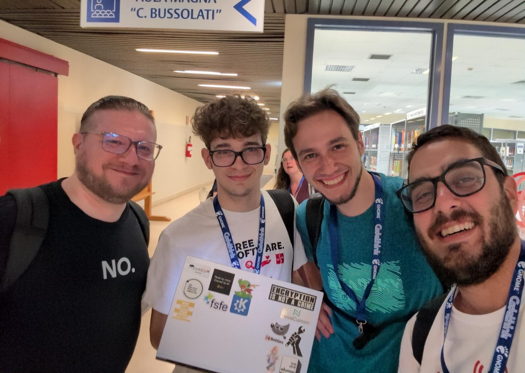 Photo of me and another friend of mine with Emmanuele Bassi and NiccolΓ² Venerandi.