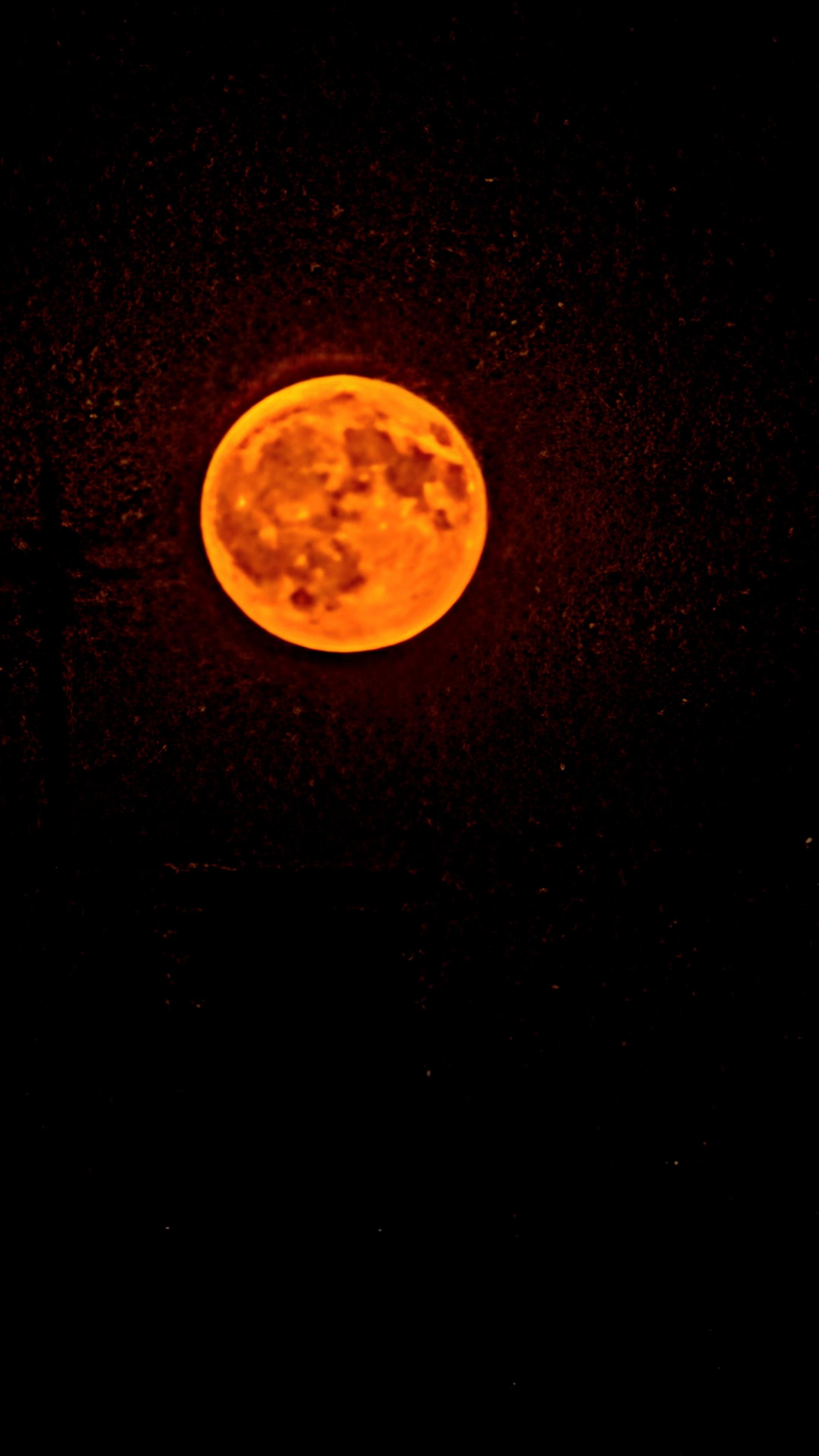 Lune ronde et orangΓ©e dans le ciel noir