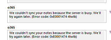 OneNote sync logs saying the cloud is busy so I can't sync my notes